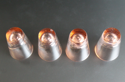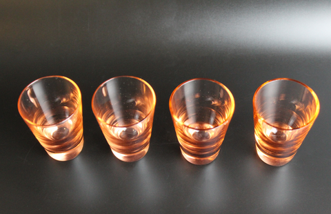 Набор из 4 изящных ликерных рюмок розовое стекло высота - 5 см, диаметр горлышка- 3.5 см, винтажные СССР 1970-1990 гг.