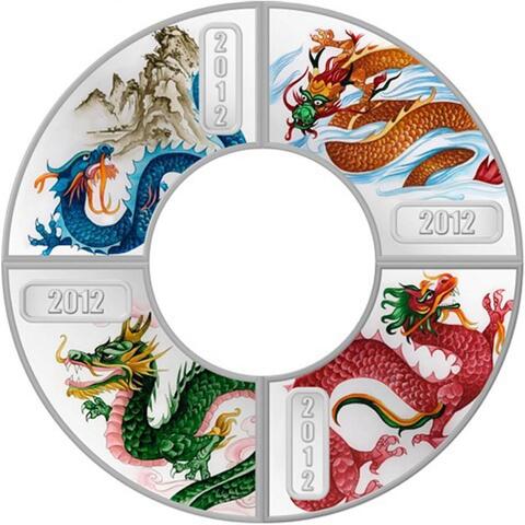 Набор из 4 монет 1 доллар. Год дракона. О-ва Кука. 2012 год. PROOF