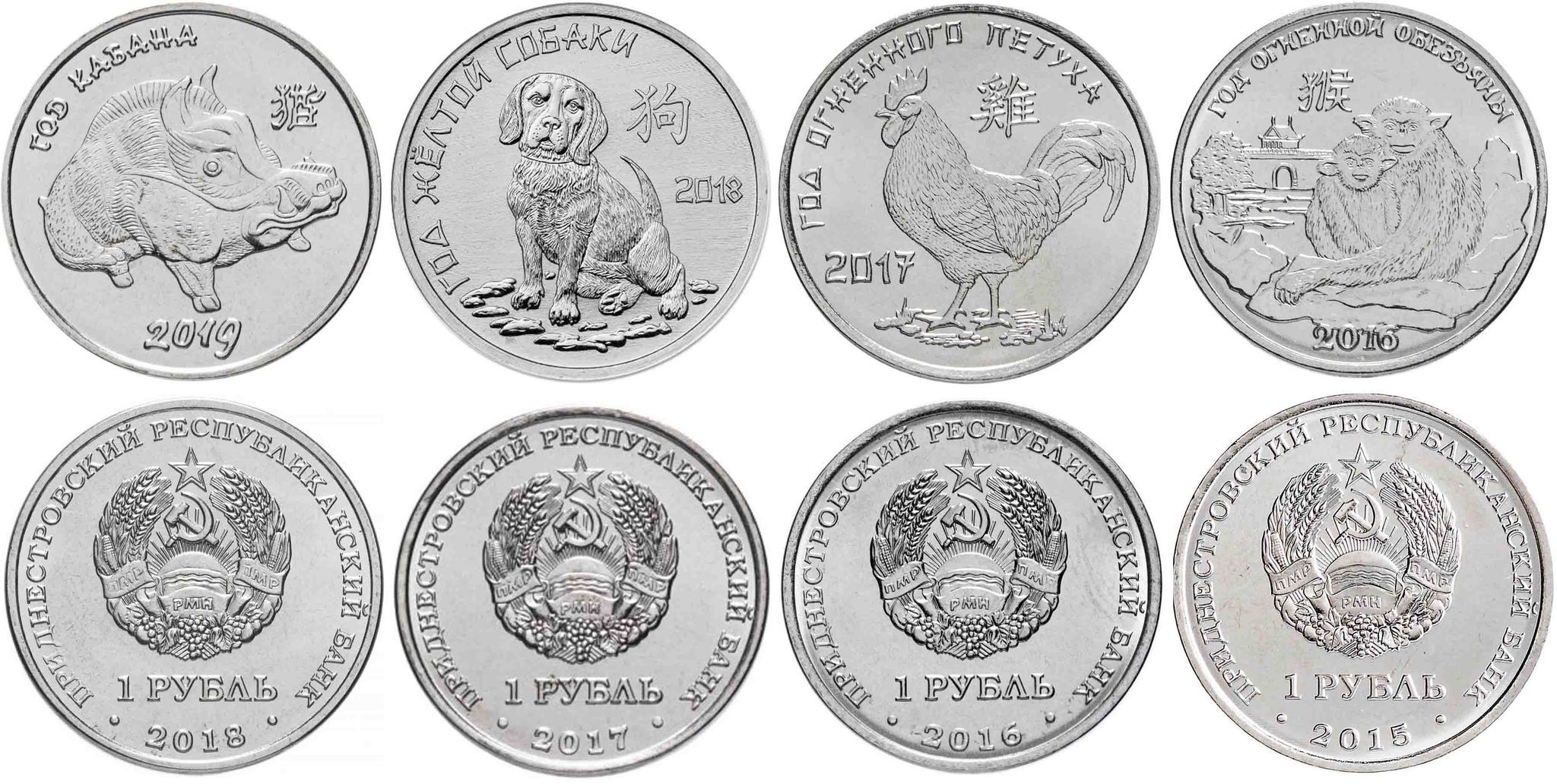 Набор из 4 монет Приднестровье 1 рубль серия "Китайский гороскоп"