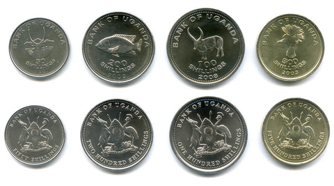 Набор из 4 монет Уганды (50, 100, 200 и 500 шиллингов) 2003-2008 г. AUNC