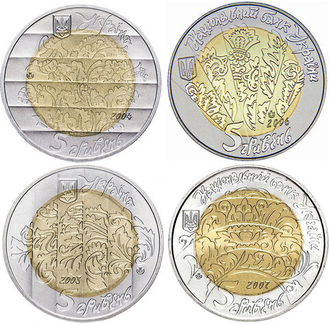 Набор из 4 монет Украины 5 гривен - Музыкальные инструменты