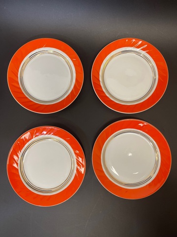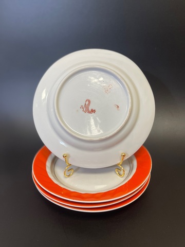 Фарфор позолота рельефные тарелки 4 шт Богдановичский ФЗ Богдановичи СССР клеймо
