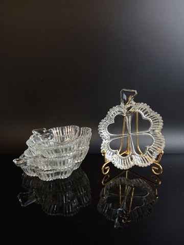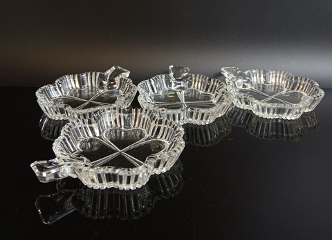 Набор из 4 розеток для варенья и закусок в форме четырехместного клевера, стекло, Чехословакия, Богемия винтаж 1970-1990 гг. Высота - 2 см, диаметр - 9.5 см. Присутствуют следы использования - состояние на фото