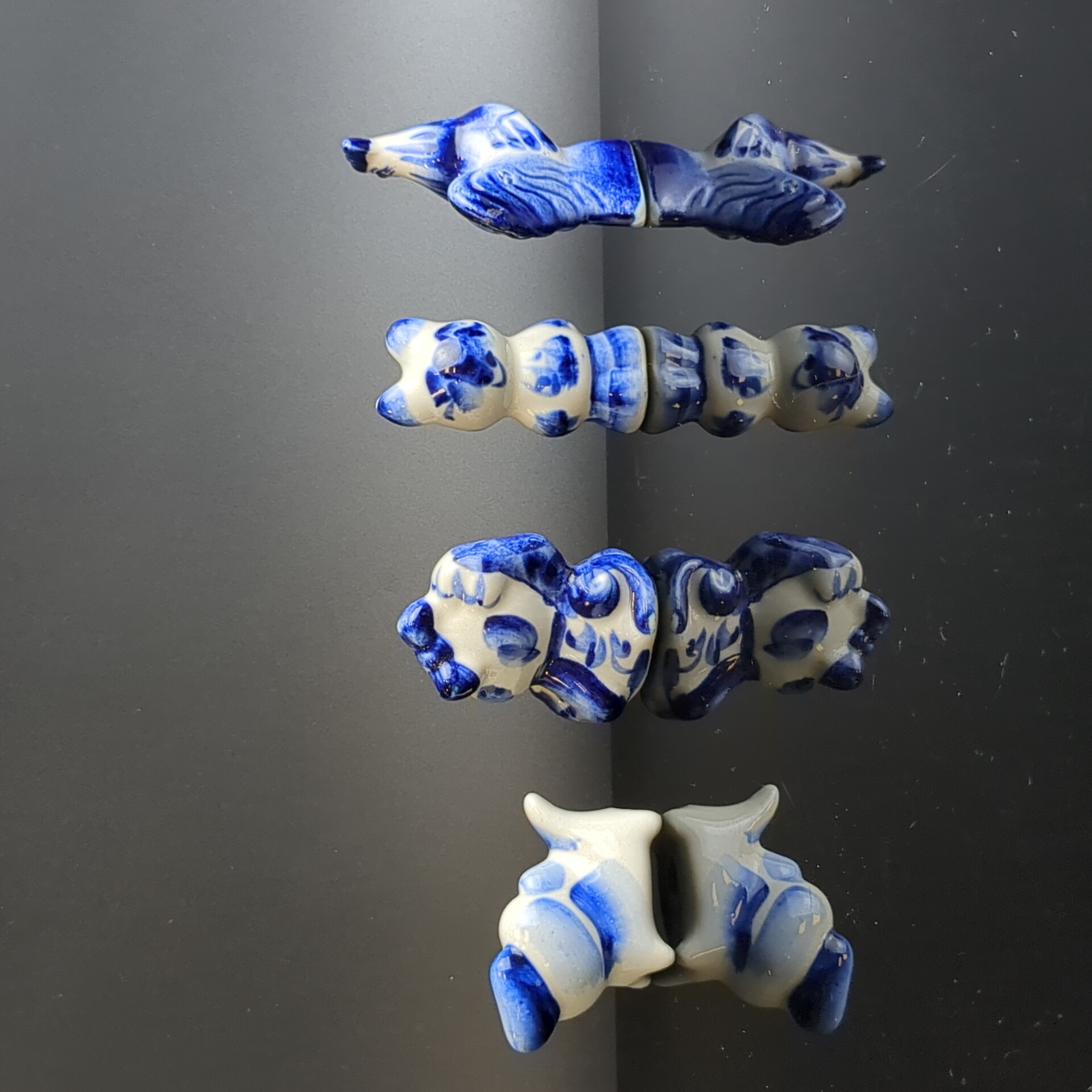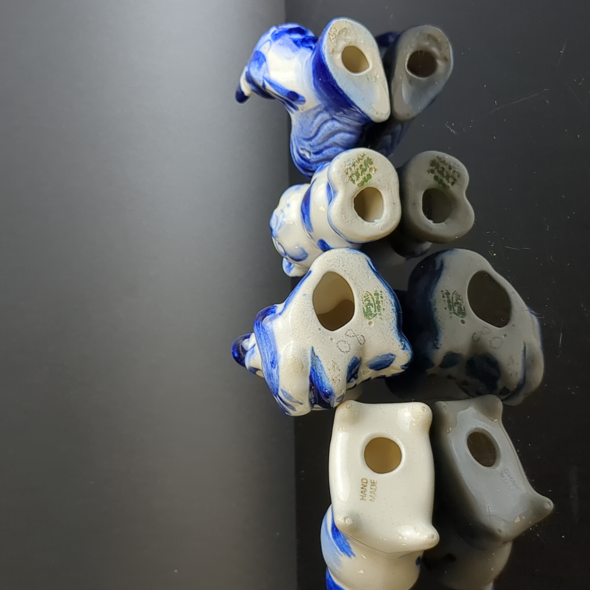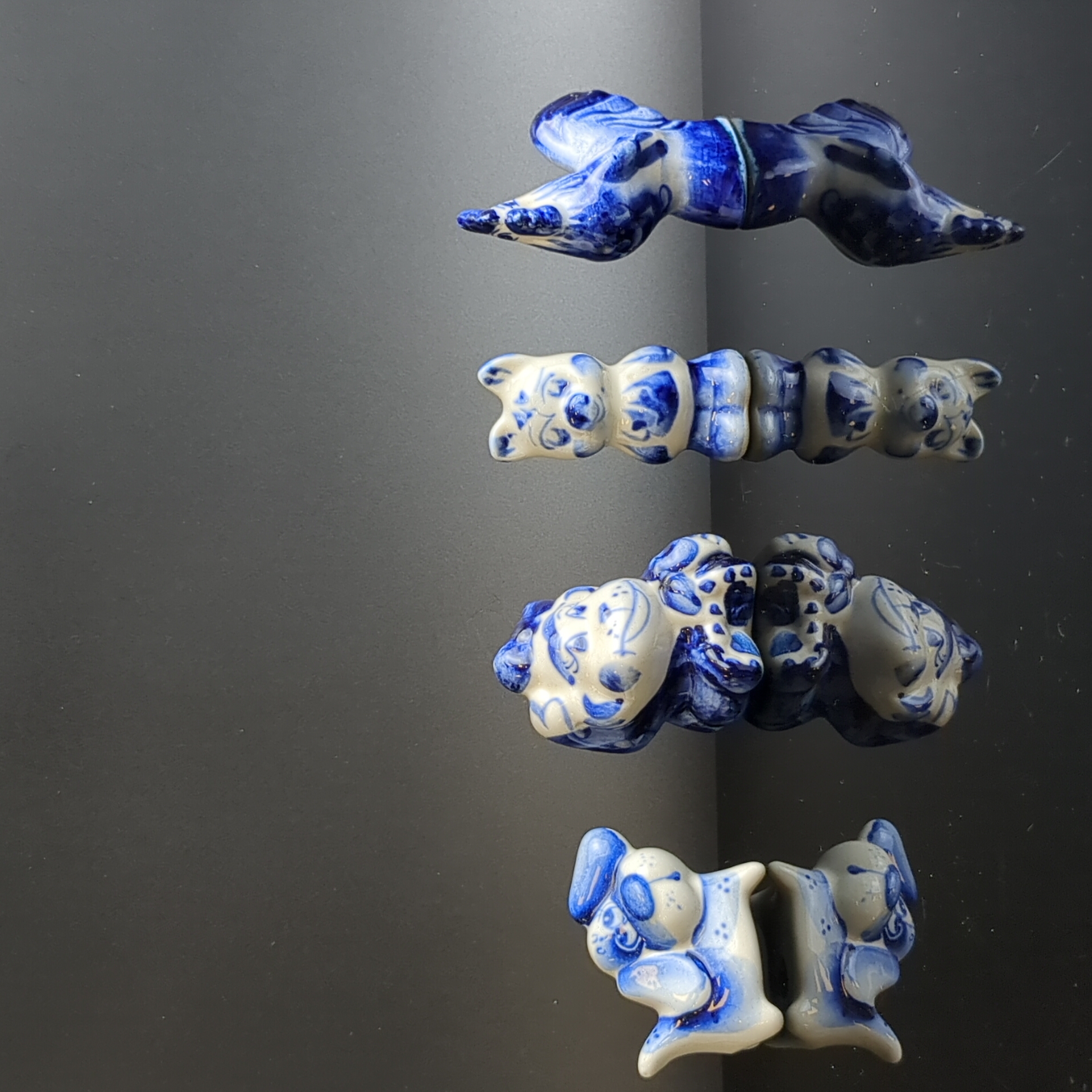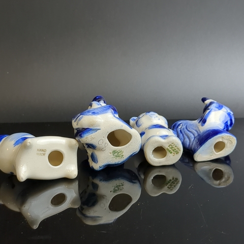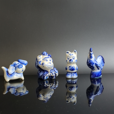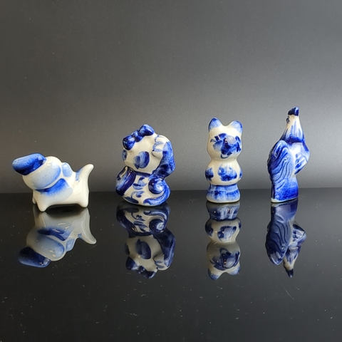 Набор из 4 статуэток Петух, собачка, кот, обезбяна. Гжель, фарфор, роспись