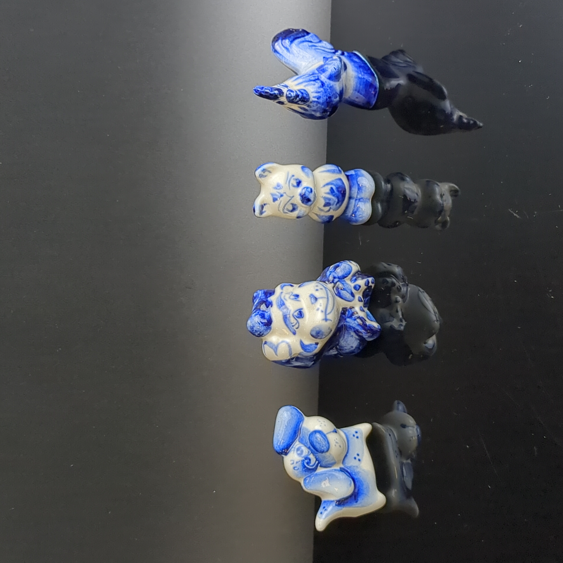 Набор из 4 статуэток Петух, собачка, кот, обезбяна. Гжель, фарфор, роспись. Высота 4 - 6,5 см
