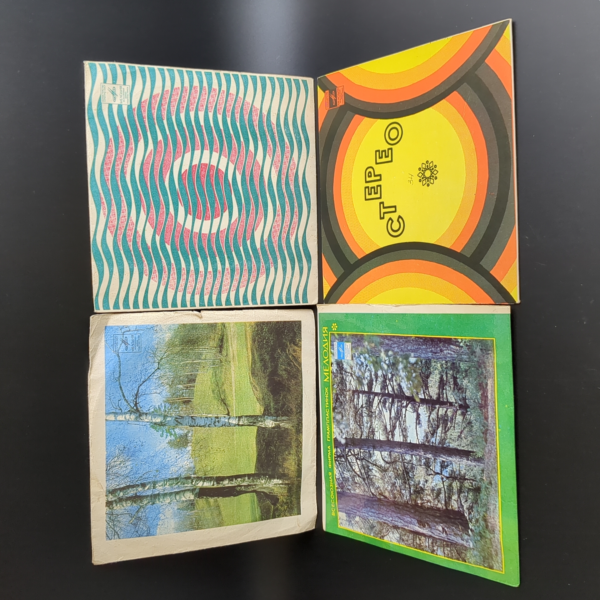 Набор из 4 цветных пластинок : ВИА Синяя птица / В. Высоцкий / А. Бабаджанян / Старинные вальсы. 4 Виниловые пластинка 7 дюймов. Мелодия СССР.