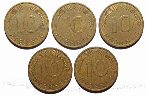 Набор из 5 монет 10 пфеннигов Германия ФРГ 1992-1996 гг. VF-XF