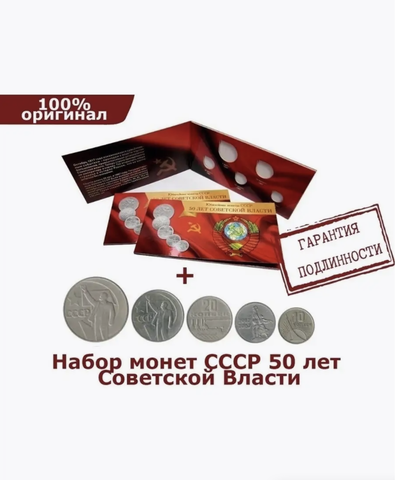 Набор из 5 монет 1967 СССР «50 лет Советской Власти» в альбоме .