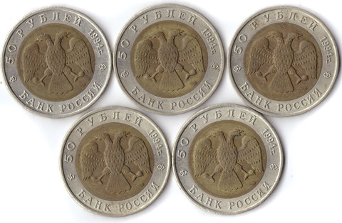 Центральный банк Российской Федерации продолжил выпуск новых монет серии "Красная книга", в 1994 году в набор вошли монеты:
