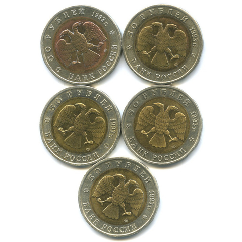 Набор из 5 монет "Красная книга" 1993 год (Тетерев, Медведь, Зублефар, Афалина, Аист)