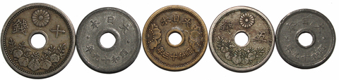 Набор из 5 монет с круглыми отверстиями Япония