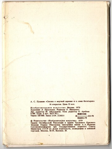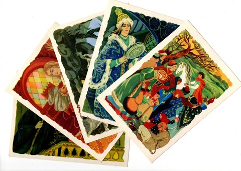Набор из 5 цветных открыток Сказка о мёртвой царевне и семи богатырях 1979 год СССР