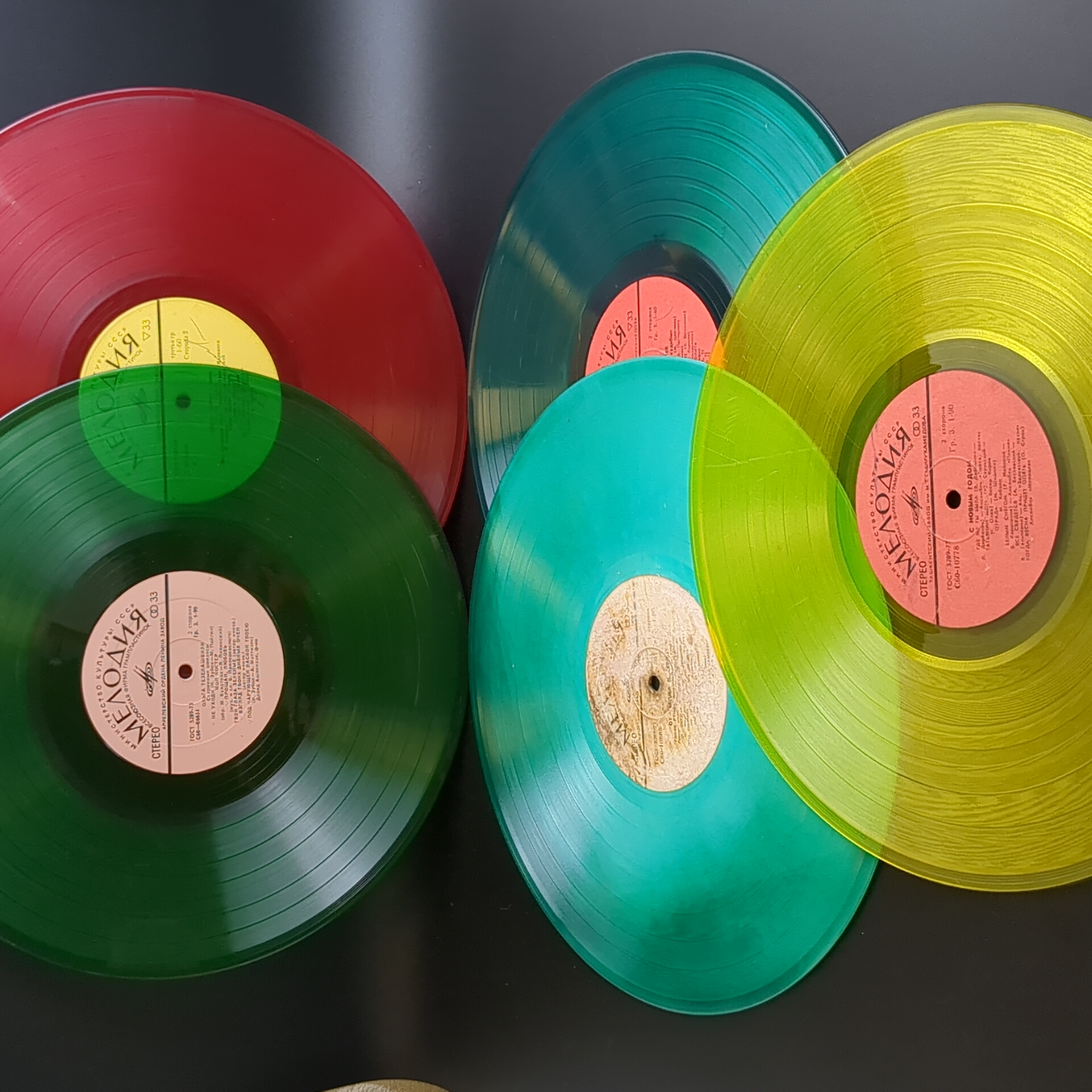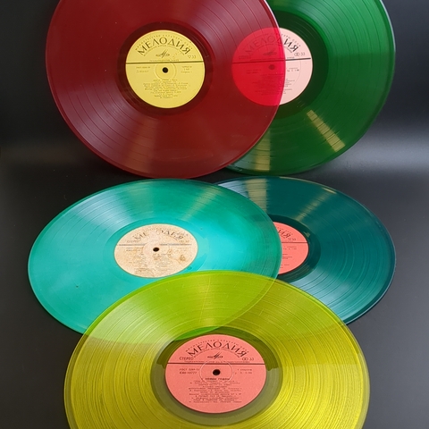 Набор из 5 цветных пластинок для декора. 5 Виниловых пластинок 12 дюймов 30 см / цветные редкие коллекционные пластинки. На пластинках присутствую царапины, продаются как для декора интерьера и для поделок. Состояние на фото. Жёлтый винил, красный винил, зеленый винил. Панно на стене из пластинок может стать классическим вариантом декора. Стильное оформление подвесными пластинками на разных уровнях пользуется популярностью в ресторанах и барах в стиле 60-х-70-х. Сделать настенные часы станет еще одним интересным решением, этим точно можно удивить друзей и гостей. А еще, пластинки можно сделать виде вешалок, стильного ретро-табурета, экстравагантной люстры или создать свою необычную и неповторимую композицию для декора.