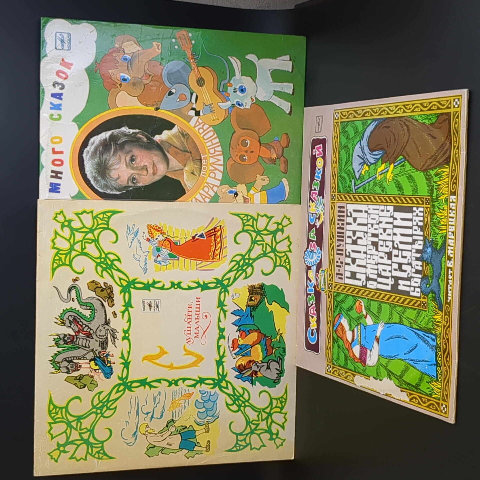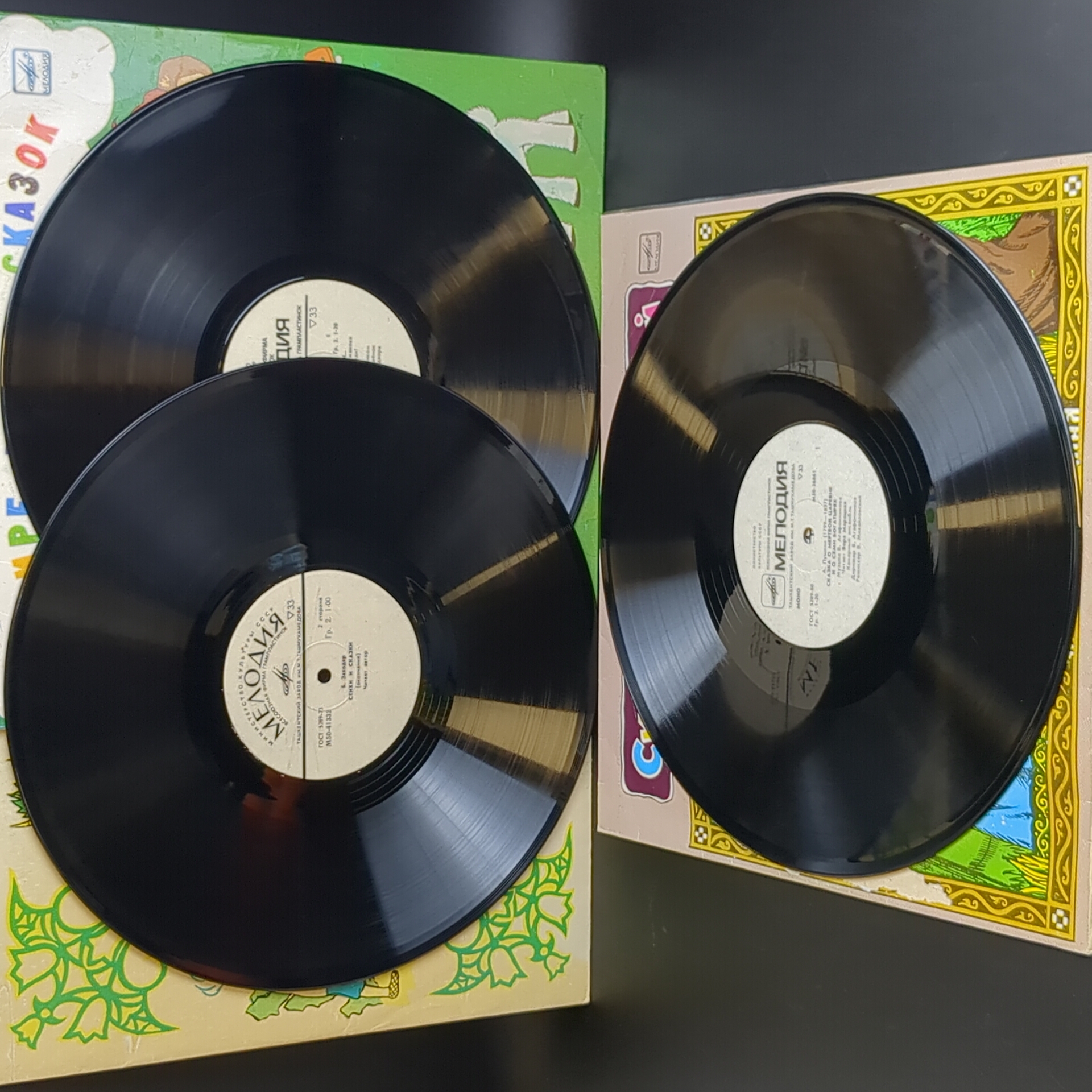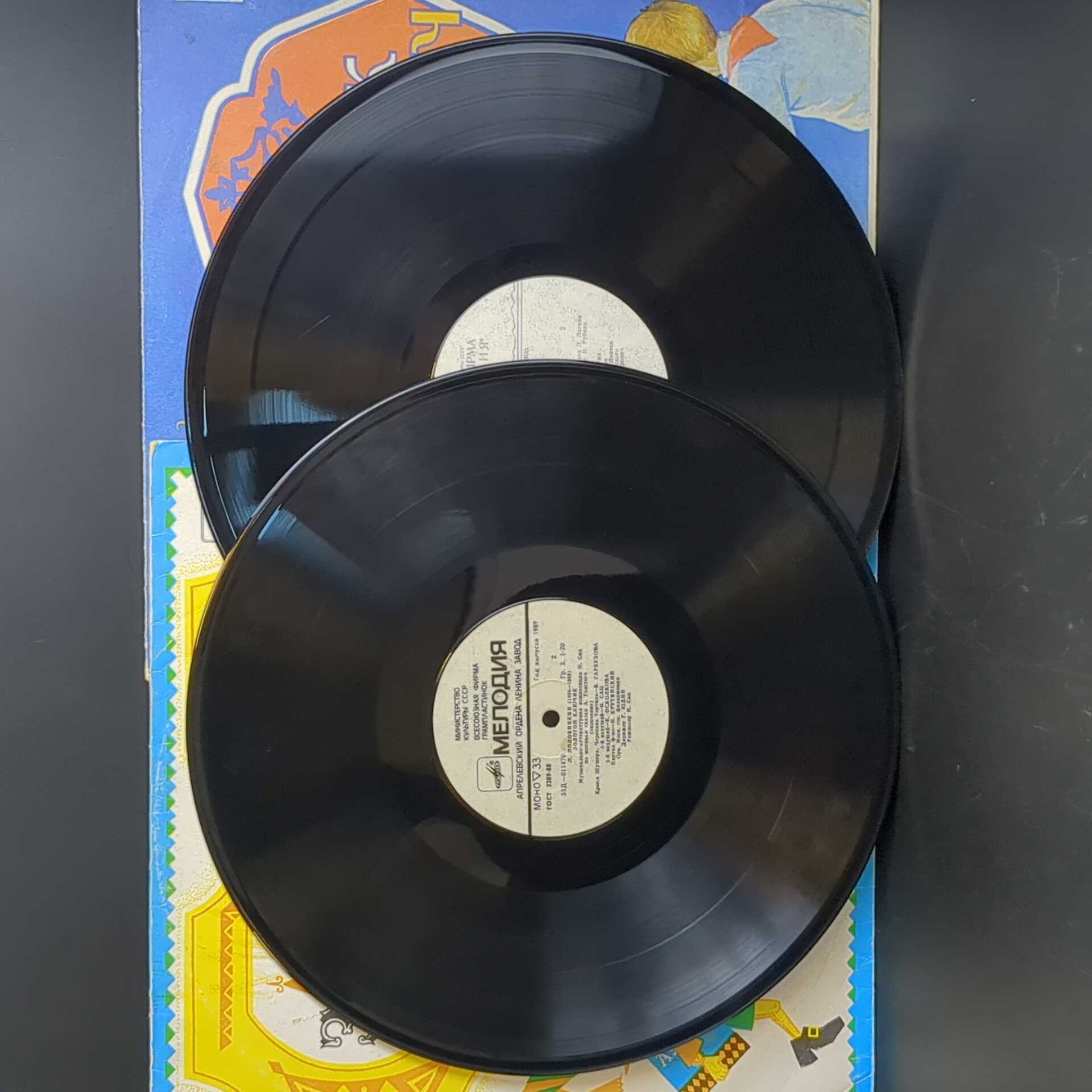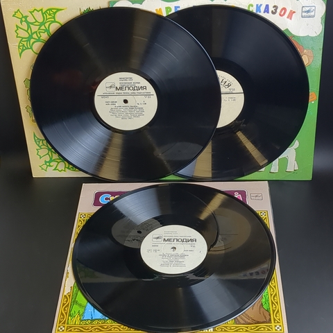 Набор из 5 виниловых пластинок 12 дюймов детские сказки и песни : Старик Хоттабыч / Золотой ключик и др. 5 Виниловых пластинок 12 дюймов. Мелодия СССР.