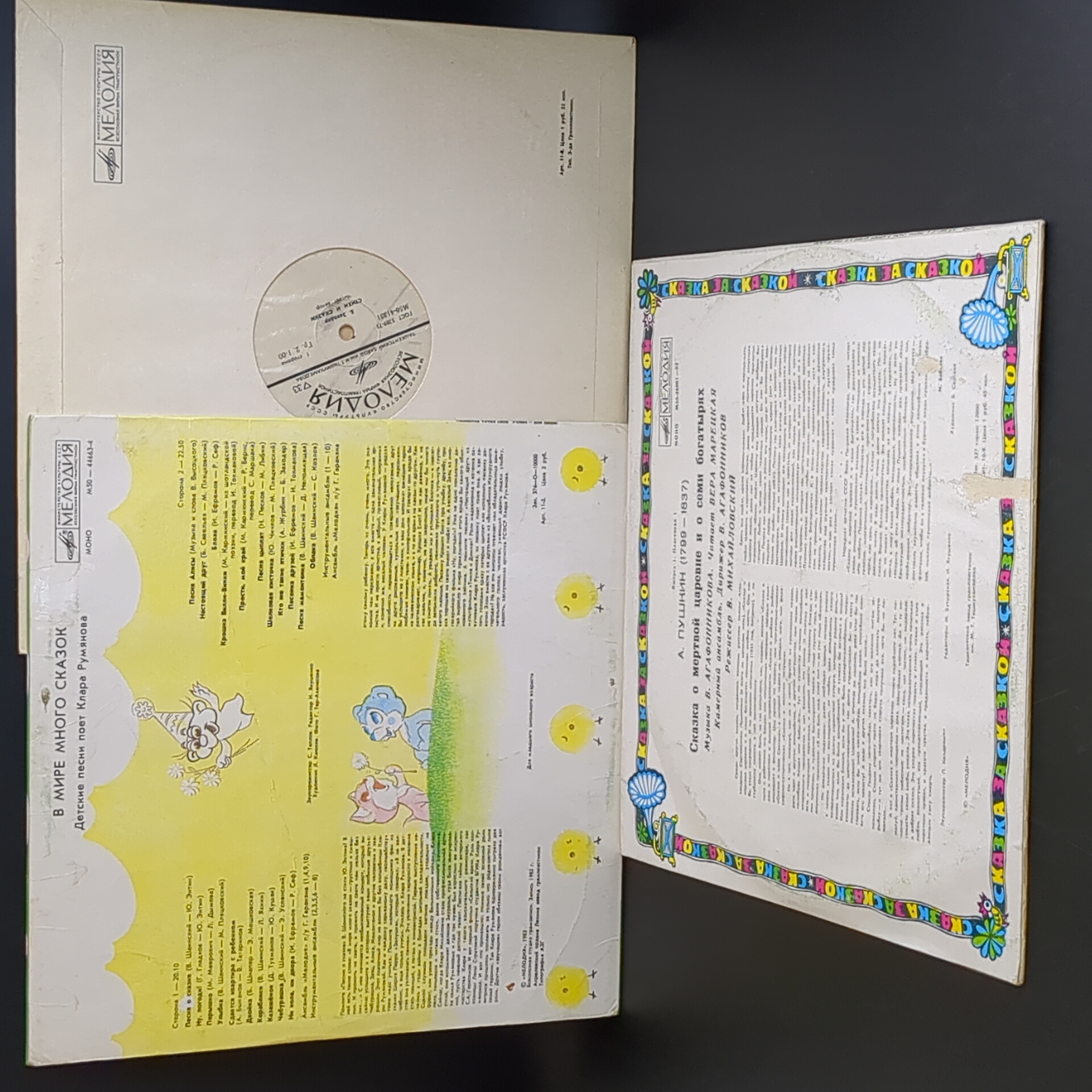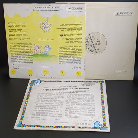 Набор из 5 больших виниловых пластинок 12 дюймов 30 см детские сказки и песни : Старик Хоттабыч / Золотой ключик / Сказка о мертвой царевне и семи богатырях / Слушайте малыши : стихи и сказки / Детские песни поет Клара Румянова. 5 Виниловых пластинок 12 дюймов. Мелодия СССР. Сказки для детей, детские сказки. Конверты VG / Диски EX