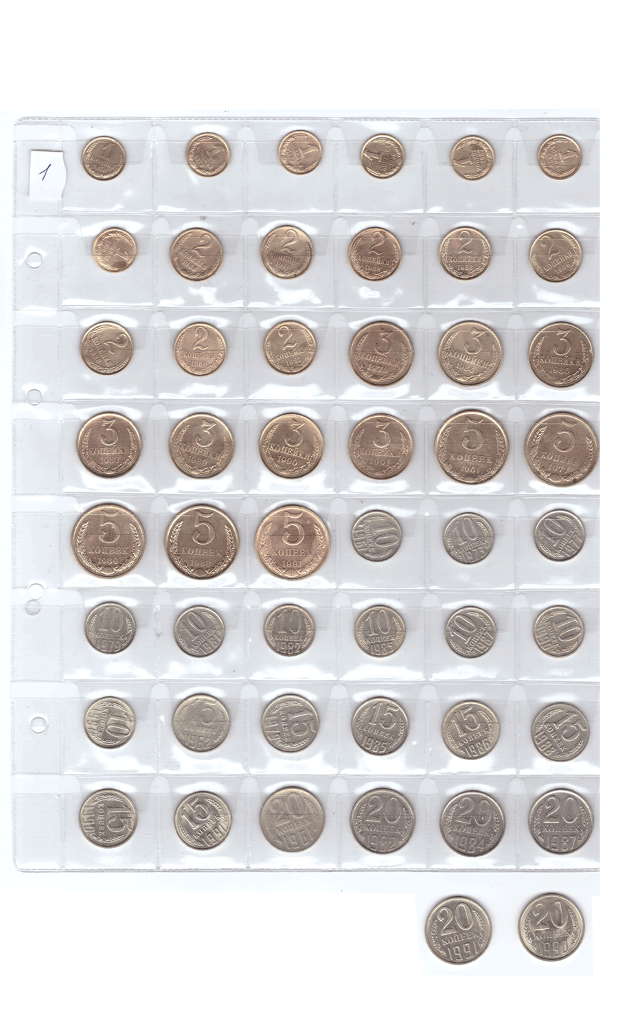 Набор из 50 монет СССР, номиналом от 1 копейки до 20 копеек (без повторов). VF-XF (1)