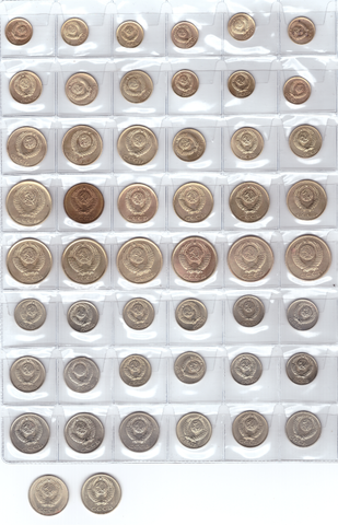 Набор из 50 монет СССР, номиналом от 1 копейки до 20 копеек (без повторов). VF-XF (10)