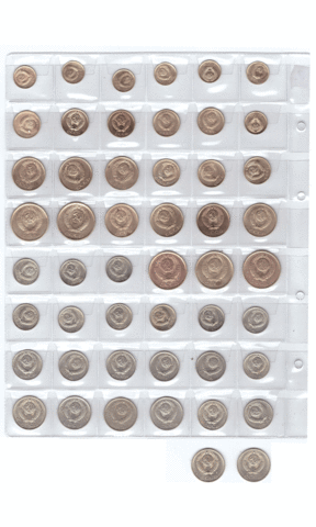 Набор из 50 монет СССР, номиналом от 1 копейки до 20 копеек (без повторов). VF-XF (10)