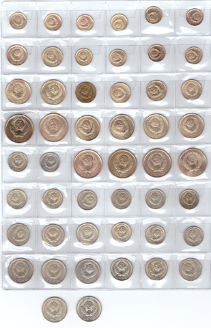 Набор из 50 монет СССР, номиналом от 1 копейки до 20 копеек (без повторов). VF-XF (20)