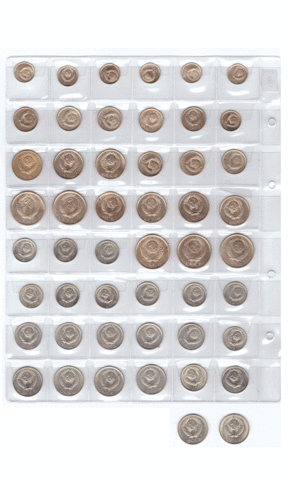 Набор из 50 монет СССР, номиналом от 1 копейки до 20 копеек (без повторов). VF-XF (3)