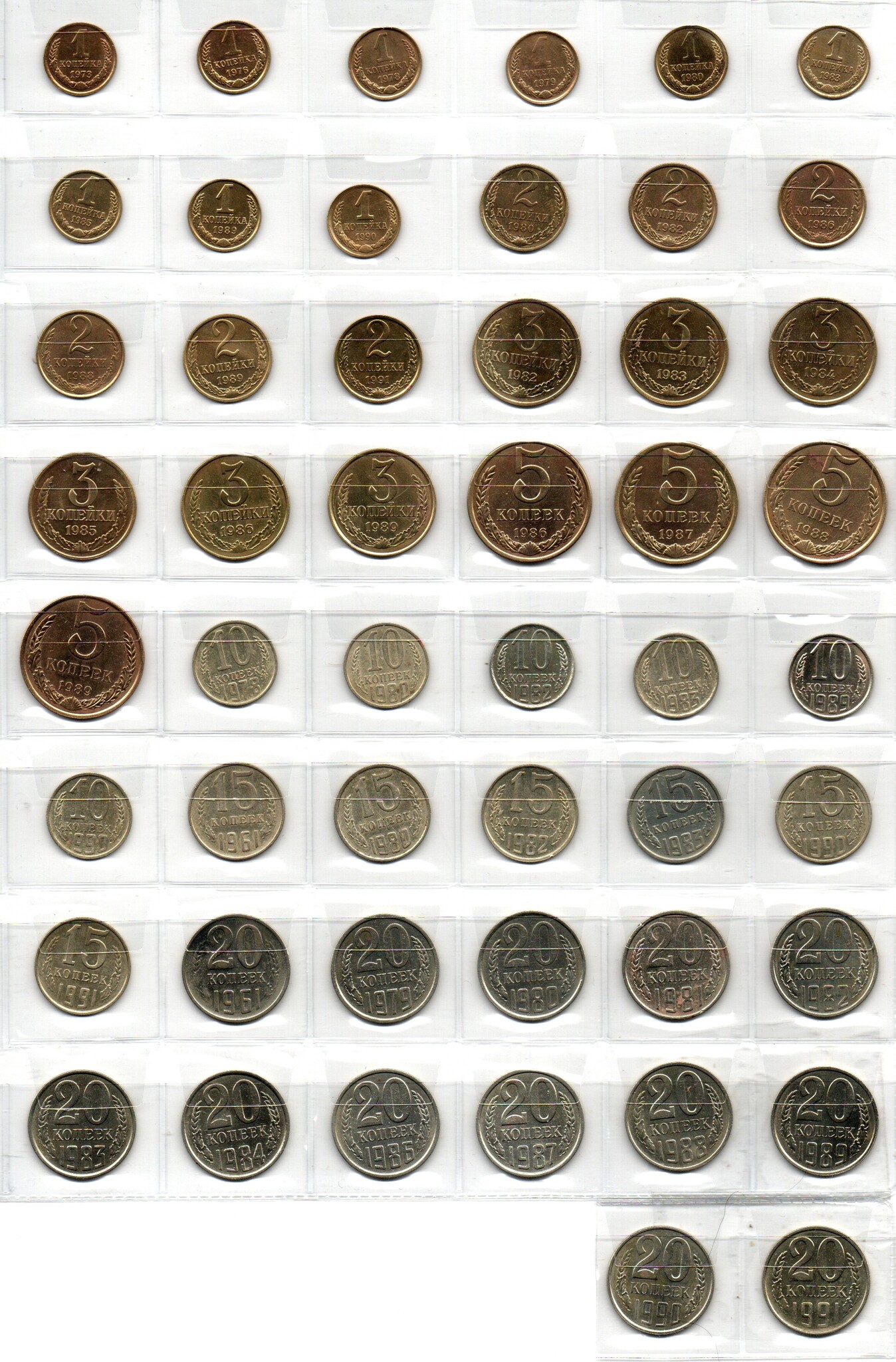 Набор из 50 монет СССР, номиналом от 1 копейки до 20 копеек (без повторов). VF-XF (3)