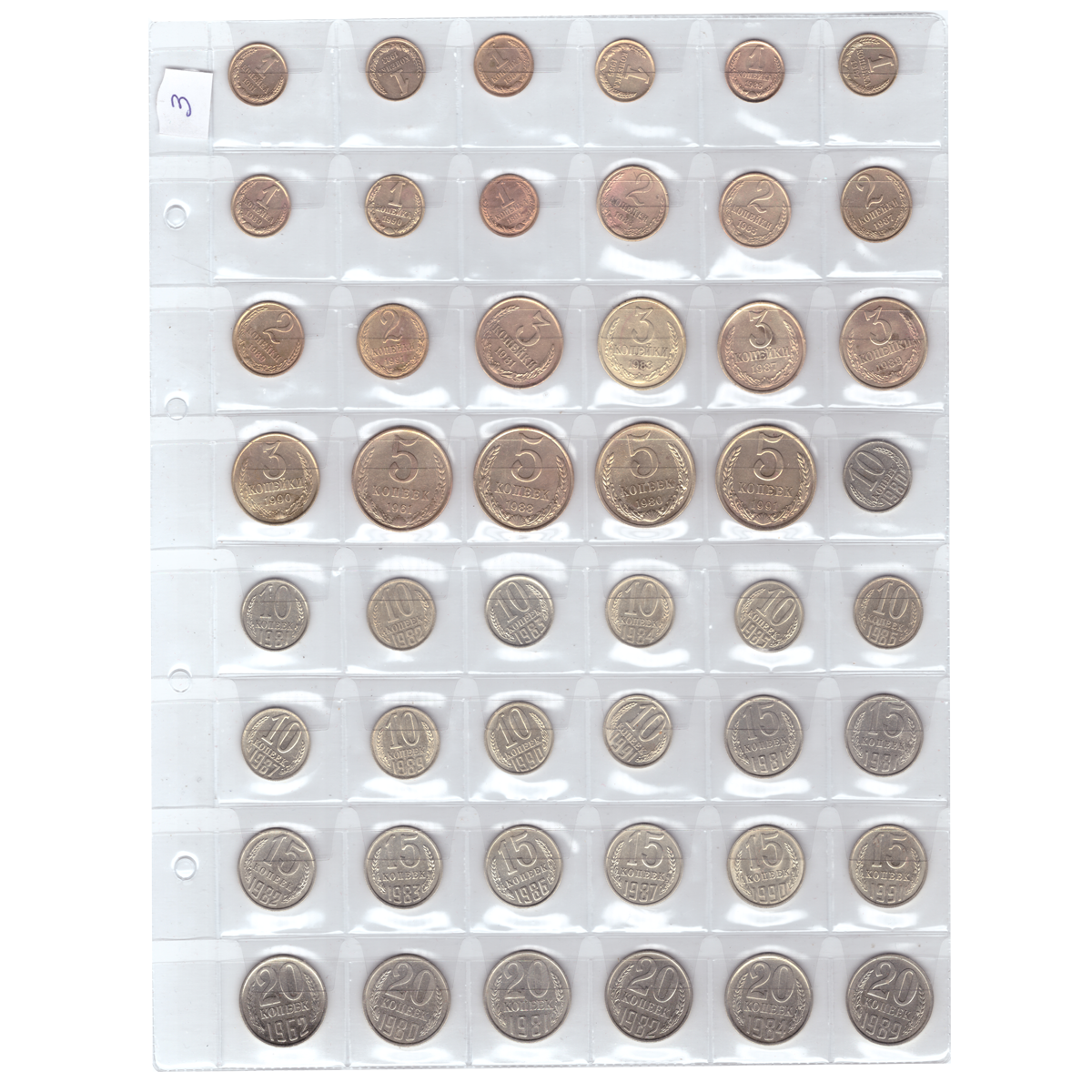 Набор из 50 монет СССР, номиналом от 1 копейки до 20 копеек (без повторов). VF-XF (3)