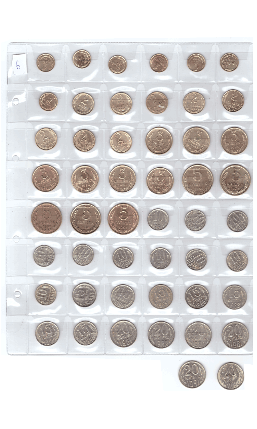 Набор из 50 монет СССР, номиналом от 1 копейки до 20 копеек (без повторов). VF-XF (6)