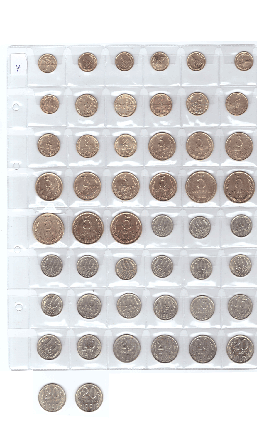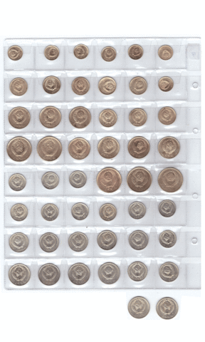 Набор из 50 монет СССР, номиналом от 1 копейки до 20 копеек (без повторов). VF-XF (7)