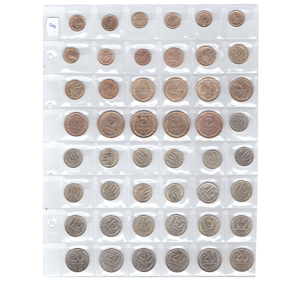 Набор из 50 монет СССР, номиналом от 1 копейки до 20 копеек (без повторов). VF-XF (8)