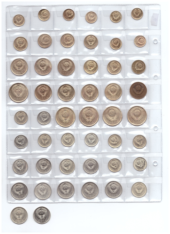 Набор из 50 монет СССР, номиналом от 1 копейки до 20 копеек (без повторов). VF-XF (9)