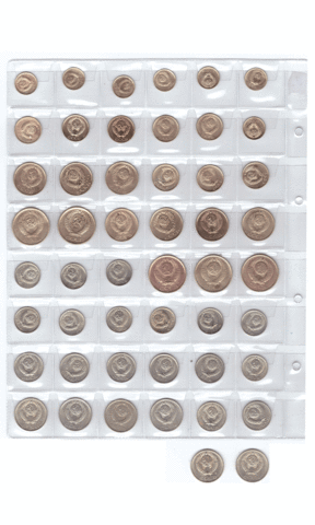Набор из 50 монет СССР, номиналом от 1 копейки до 20 копеек (без повторов). VF-XF (9)