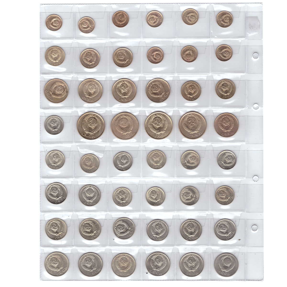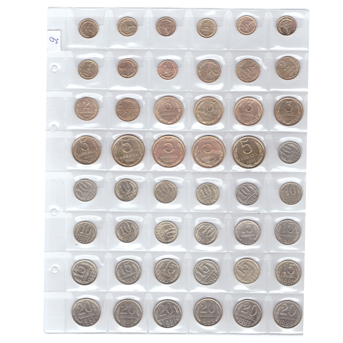 Набор из 50 монет СССР, номиналом от 1 копейки до 20 копеек (без повторов). VF-XF (9)