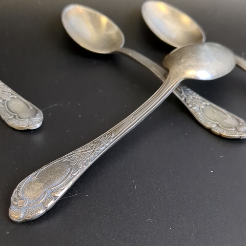 Набор из 6 чайных ложек Дубок - мельхиор - МНЦ - Киев - СССР