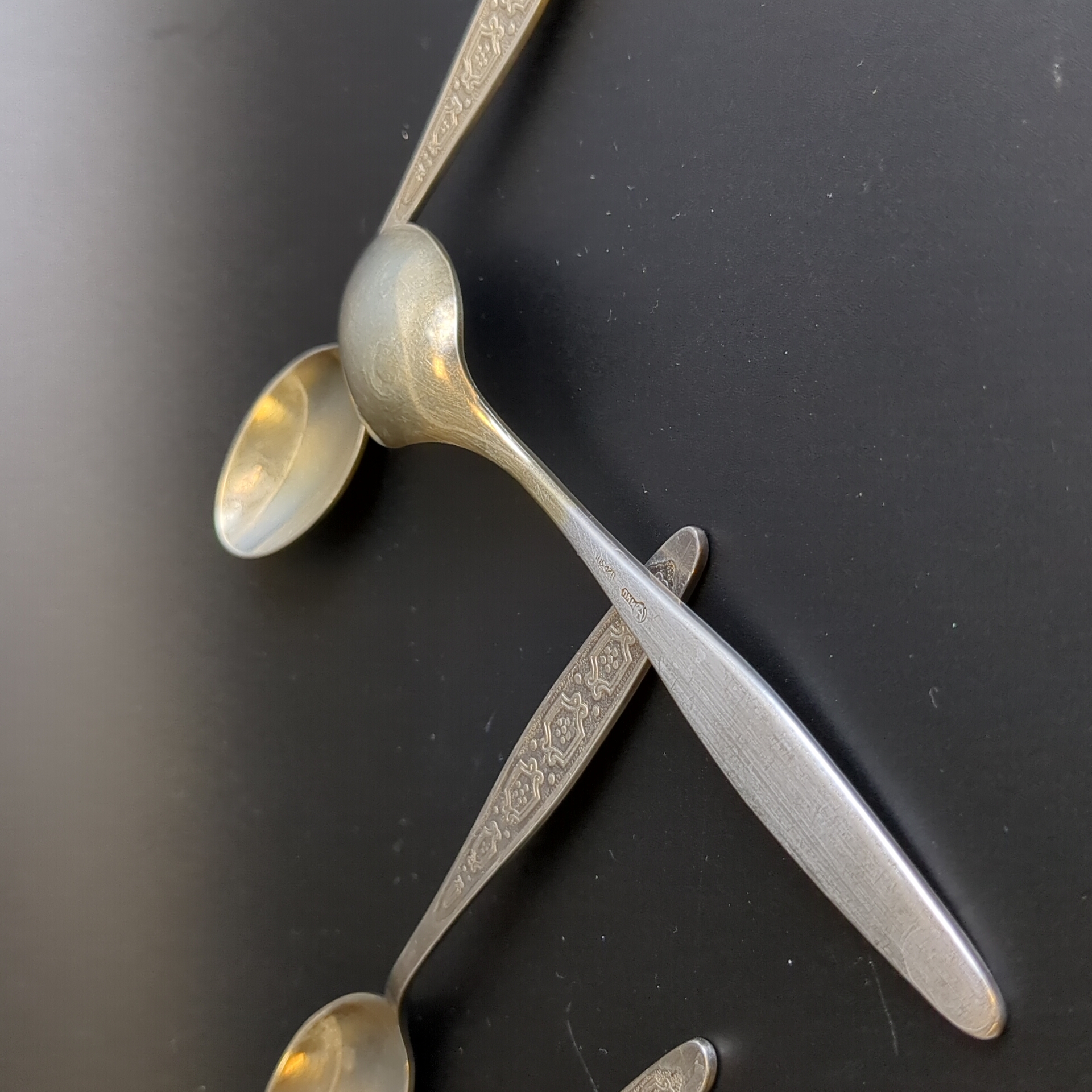 Набор из 6 чайных ложек - мельхиор - МНЦ - Кольугино - СССР