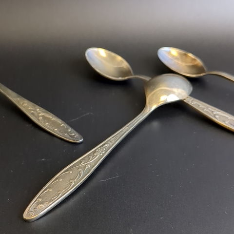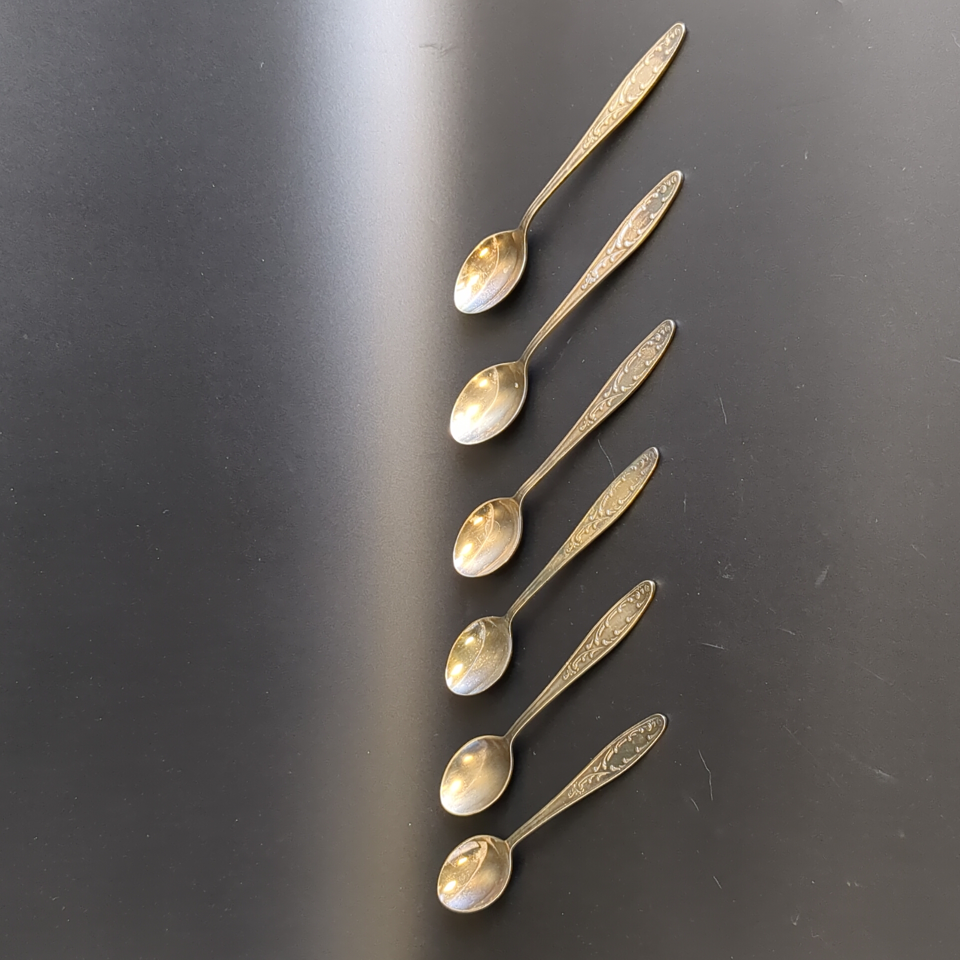 Набор из 6 чайных ложек Пламя - мельхиор - МНЦ - Кольугино - СССР