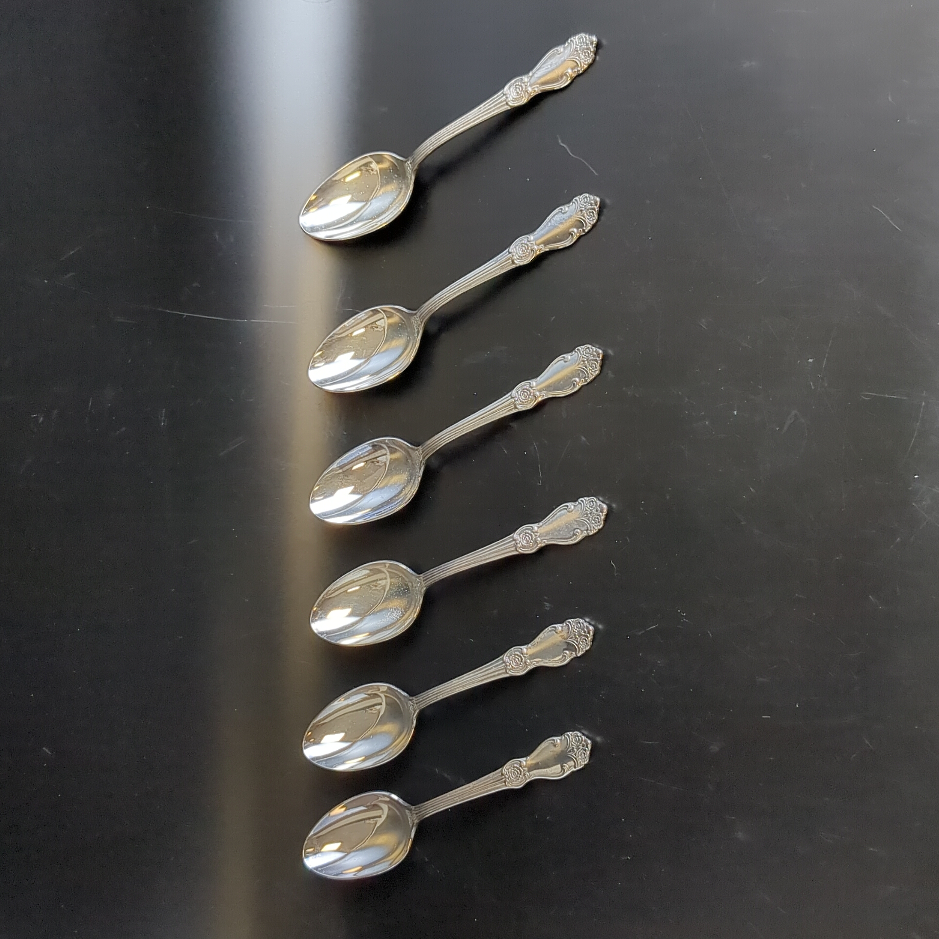 Набор из 6 чайных ложек Роза - мельхиор - МНЦ - Кольугино - СССР