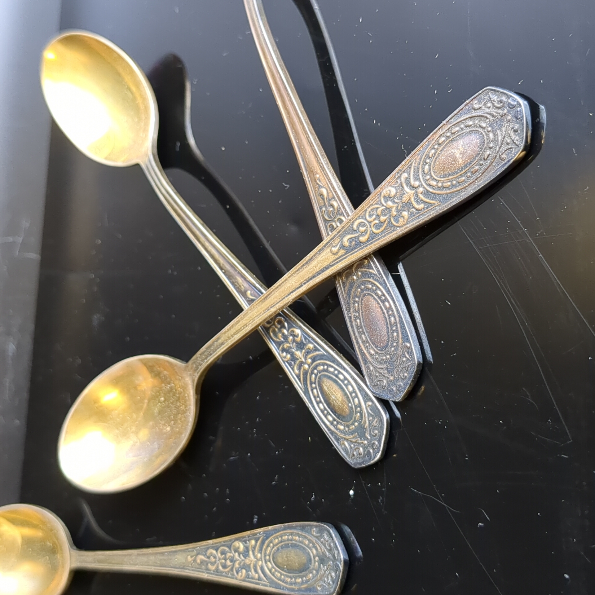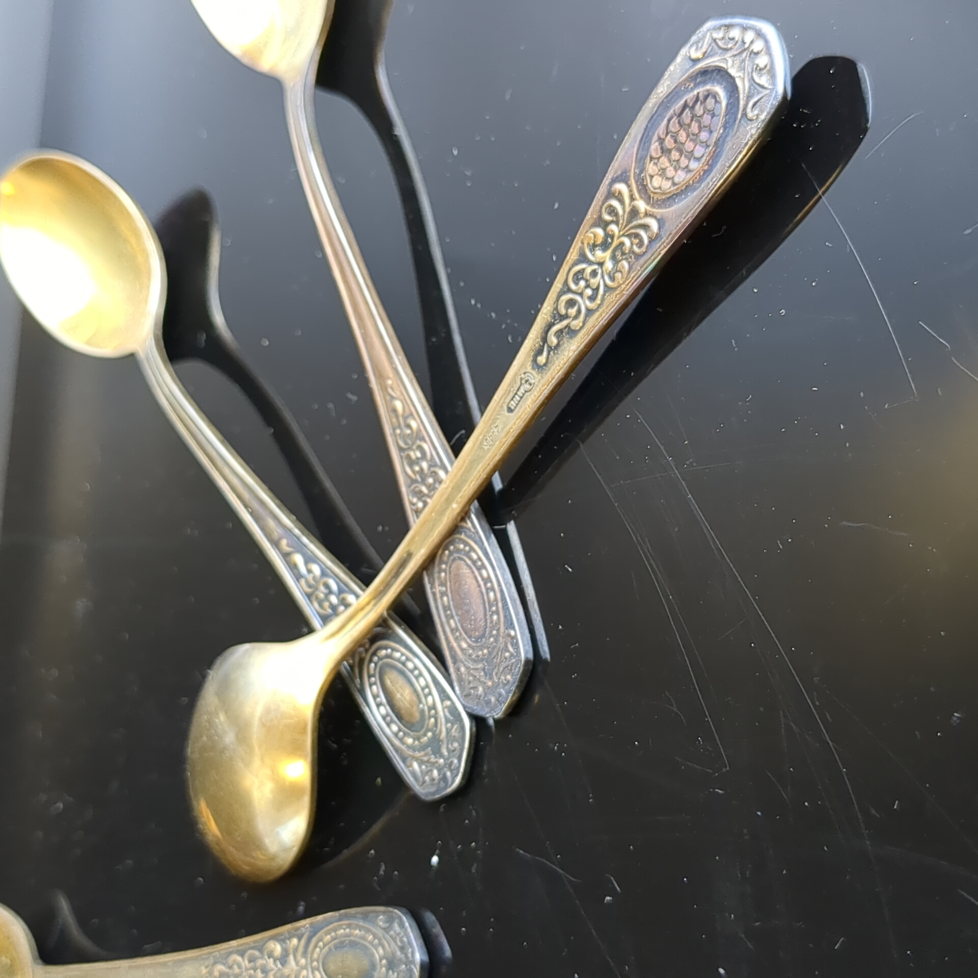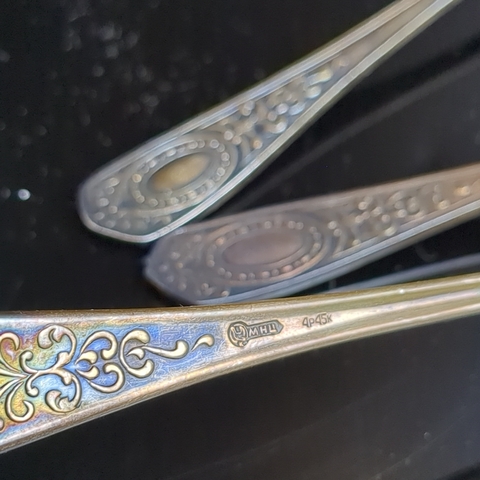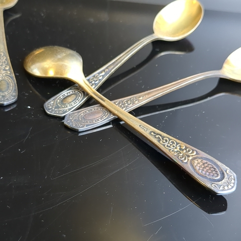 Набор из 6 чайных ложек с орнаментом , мНЦ (медь-никель-цинк), Кольчугинский завод цветных металлов, СССР, 1960-1980 гг.