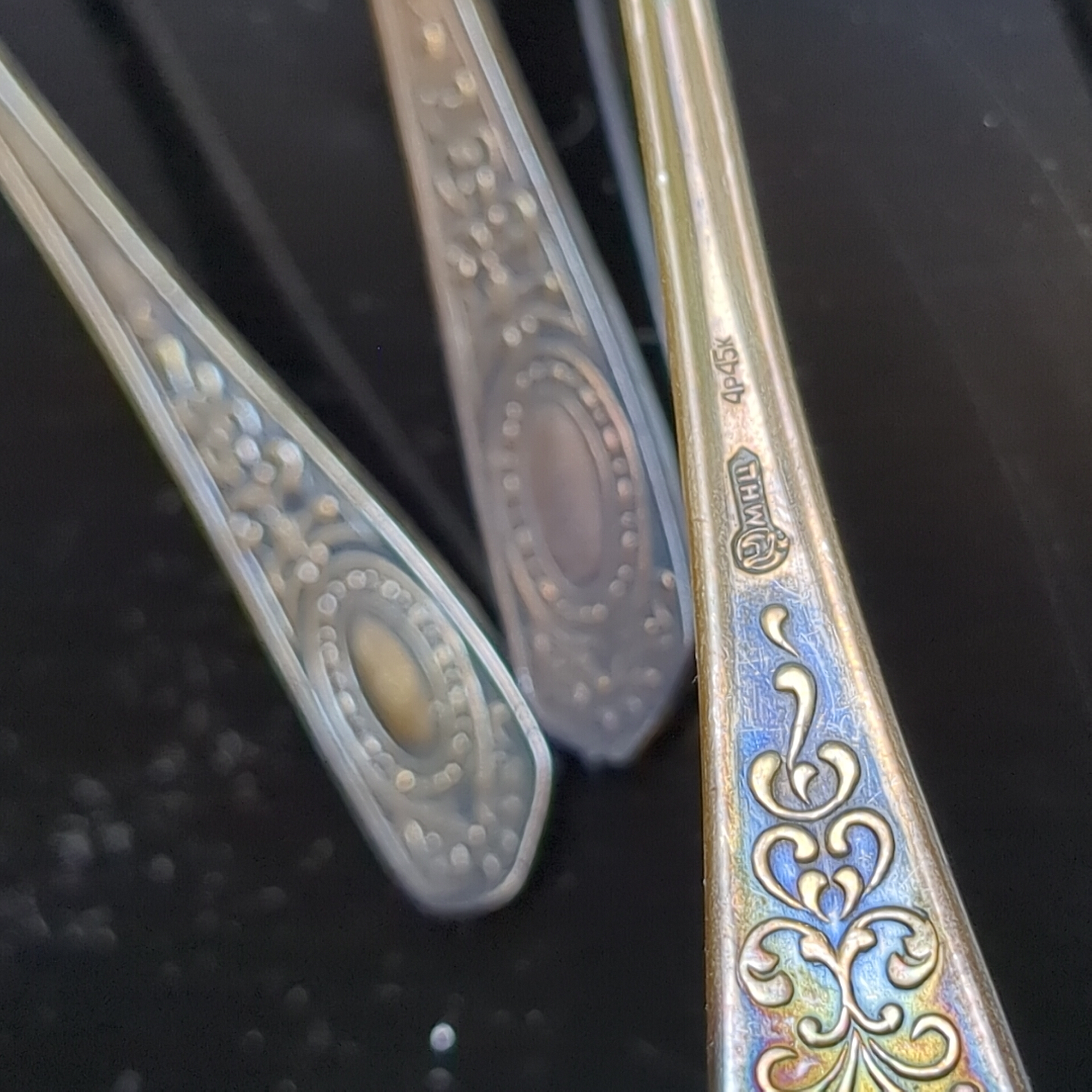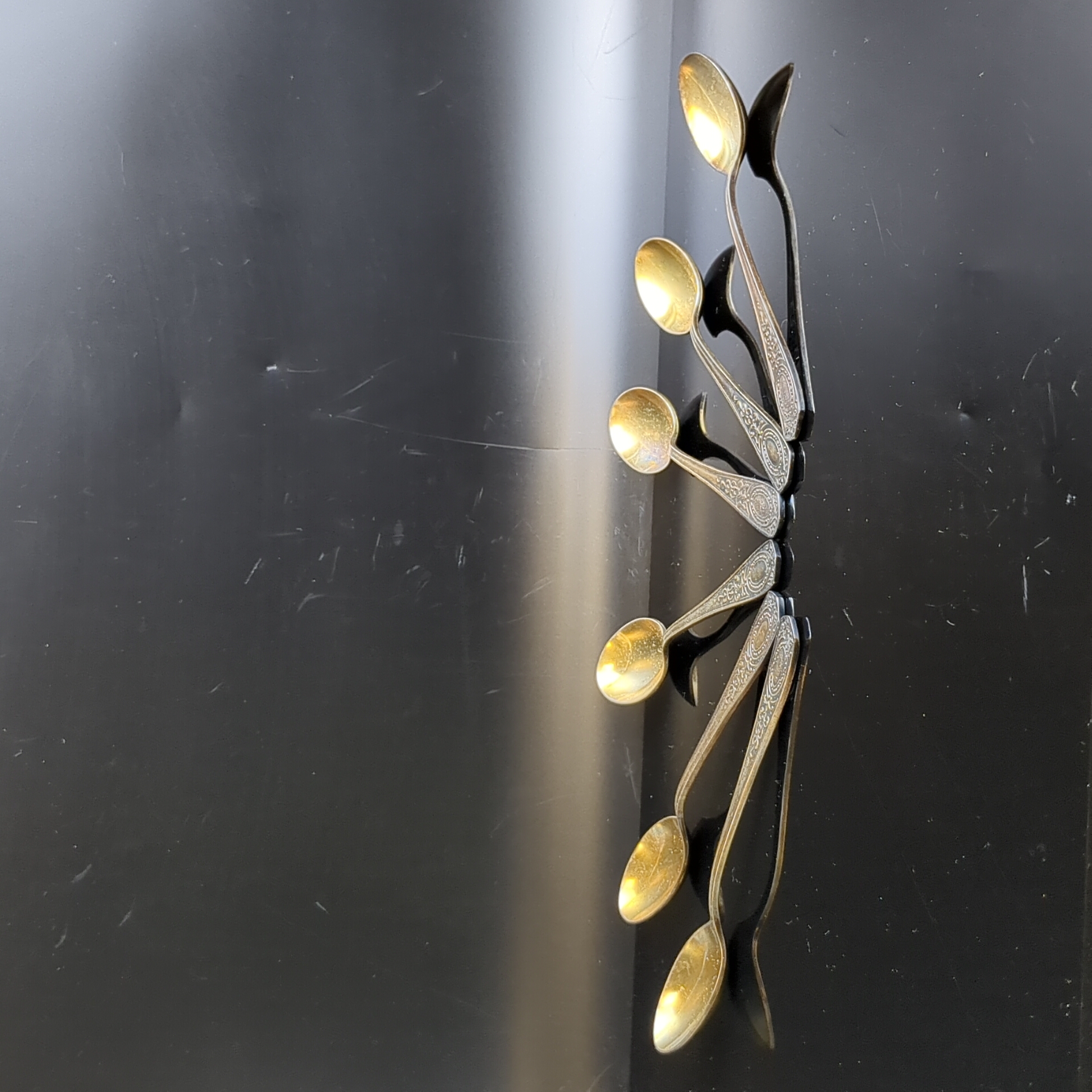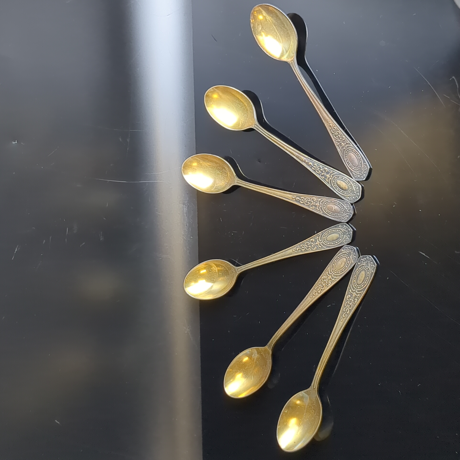 Набор из 6 чайных ложек с орнаментом , мНЦ (медь-никель-цинк), Кольчугинский завод цветных металлов, СССР, 1960-1980 гг.