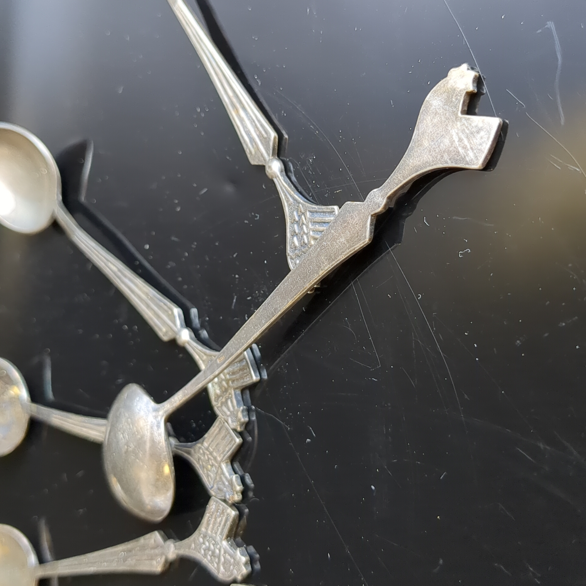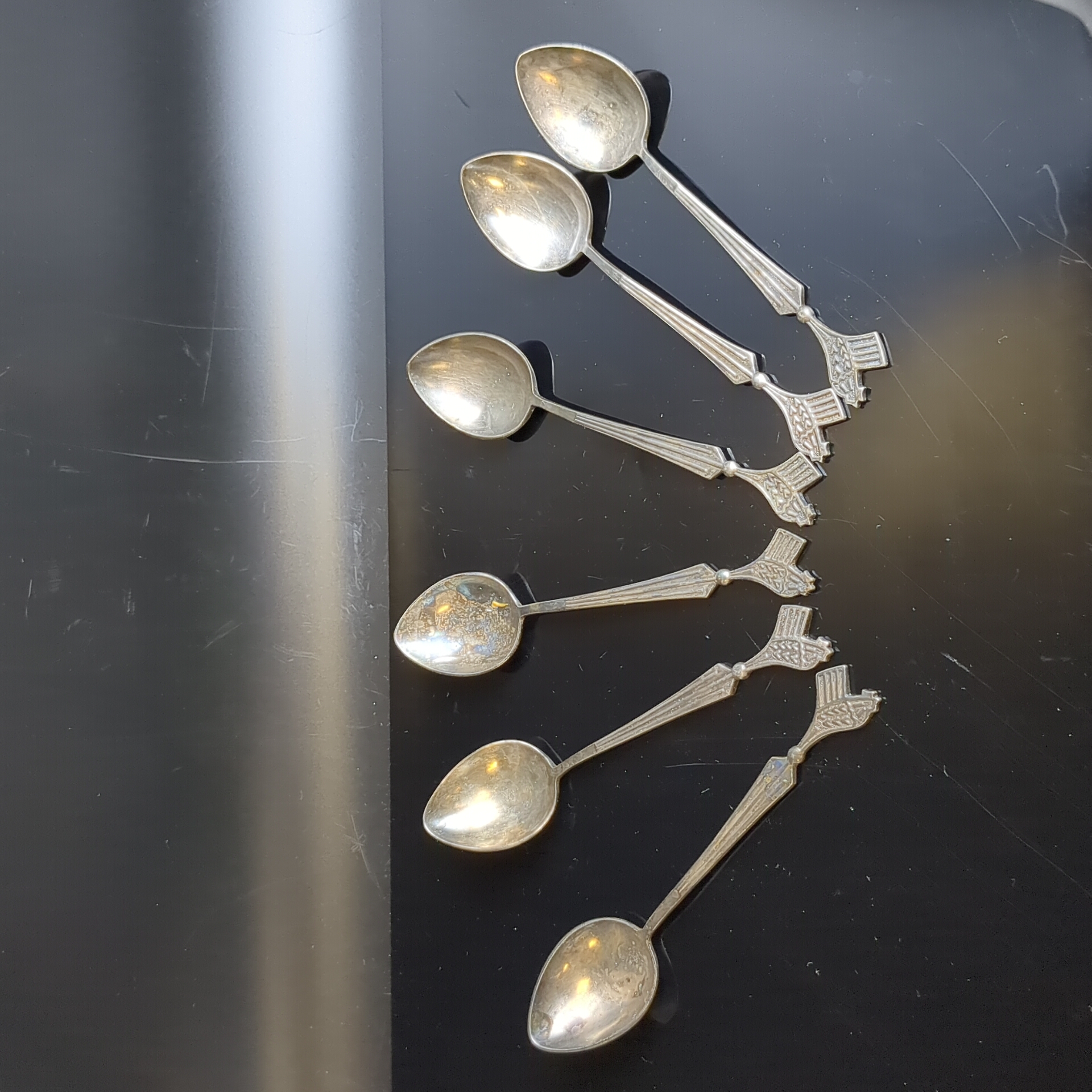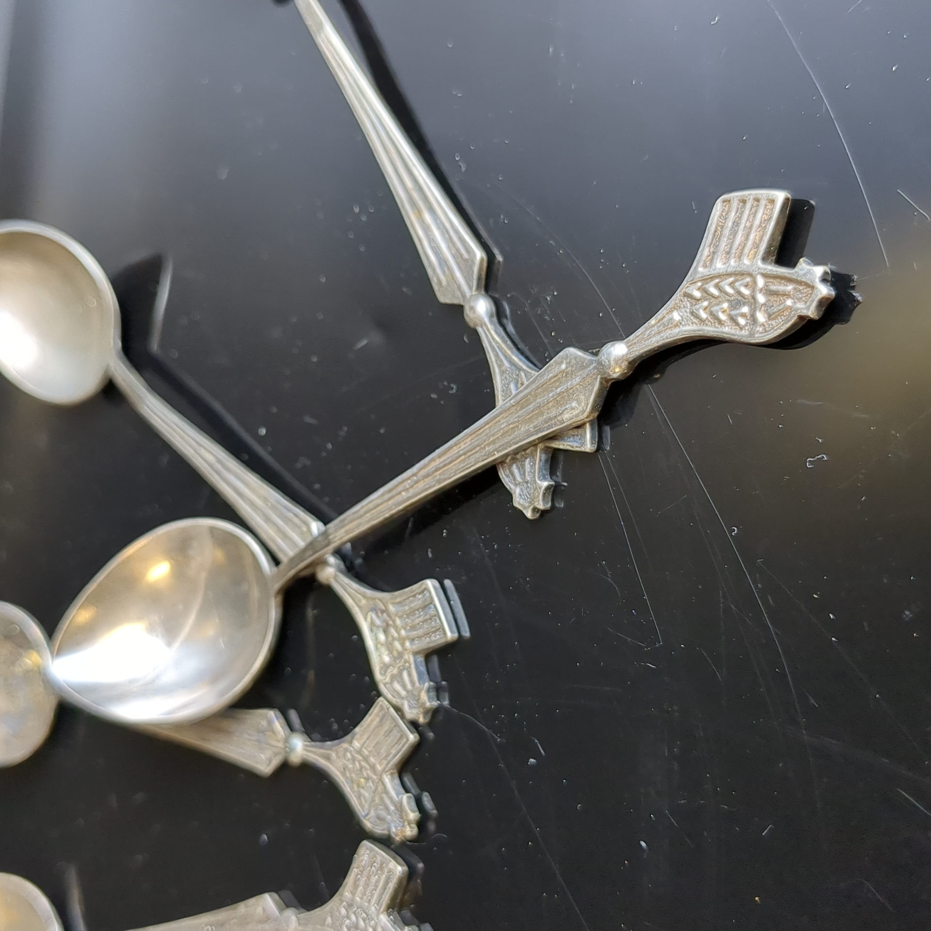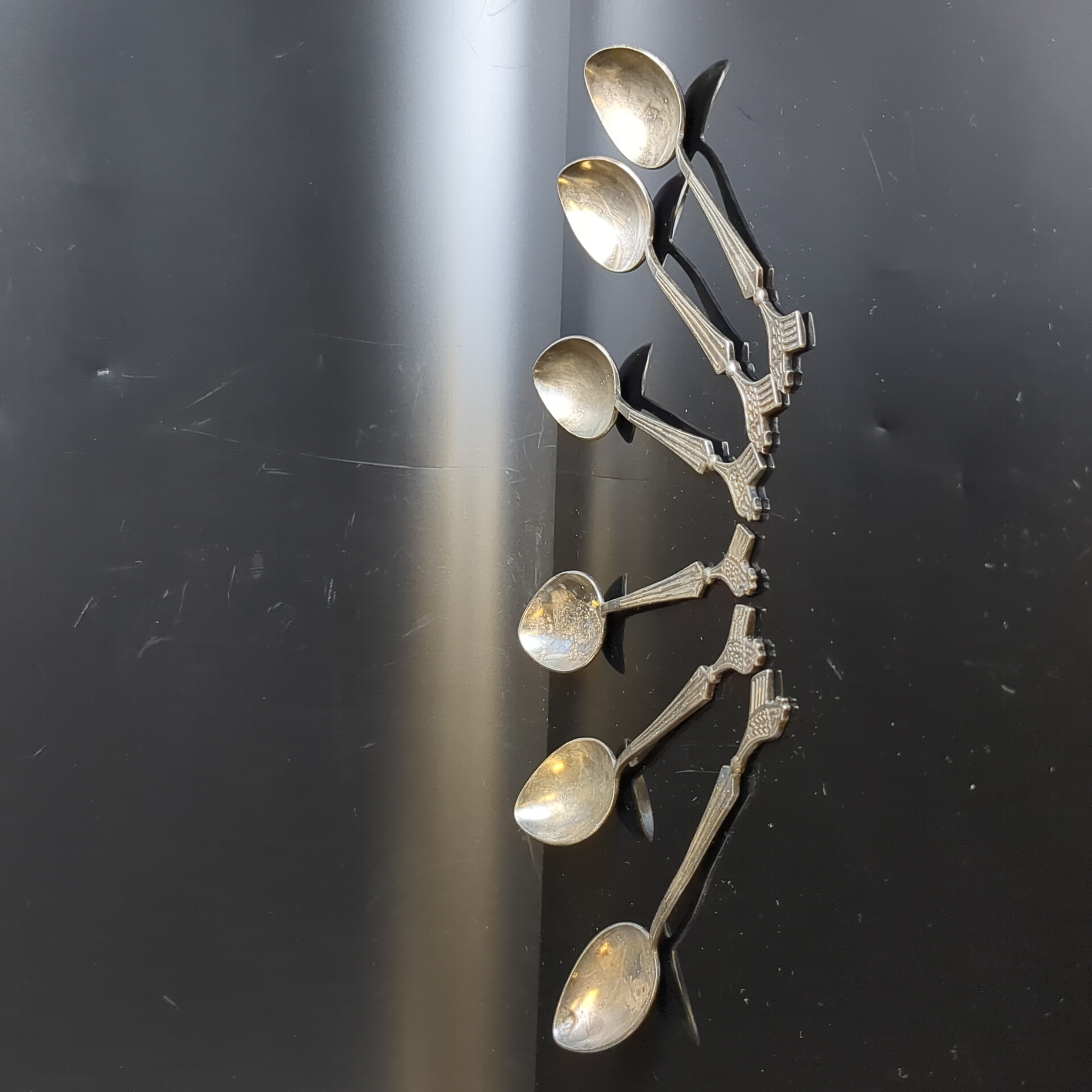 Набор из 6 чайных ложек в коробке. Черенок декорирован изображением петушка., мельхиор (медь-никель), Красносельская ювелирная фабрика, СССР, 1950-1960 гг.