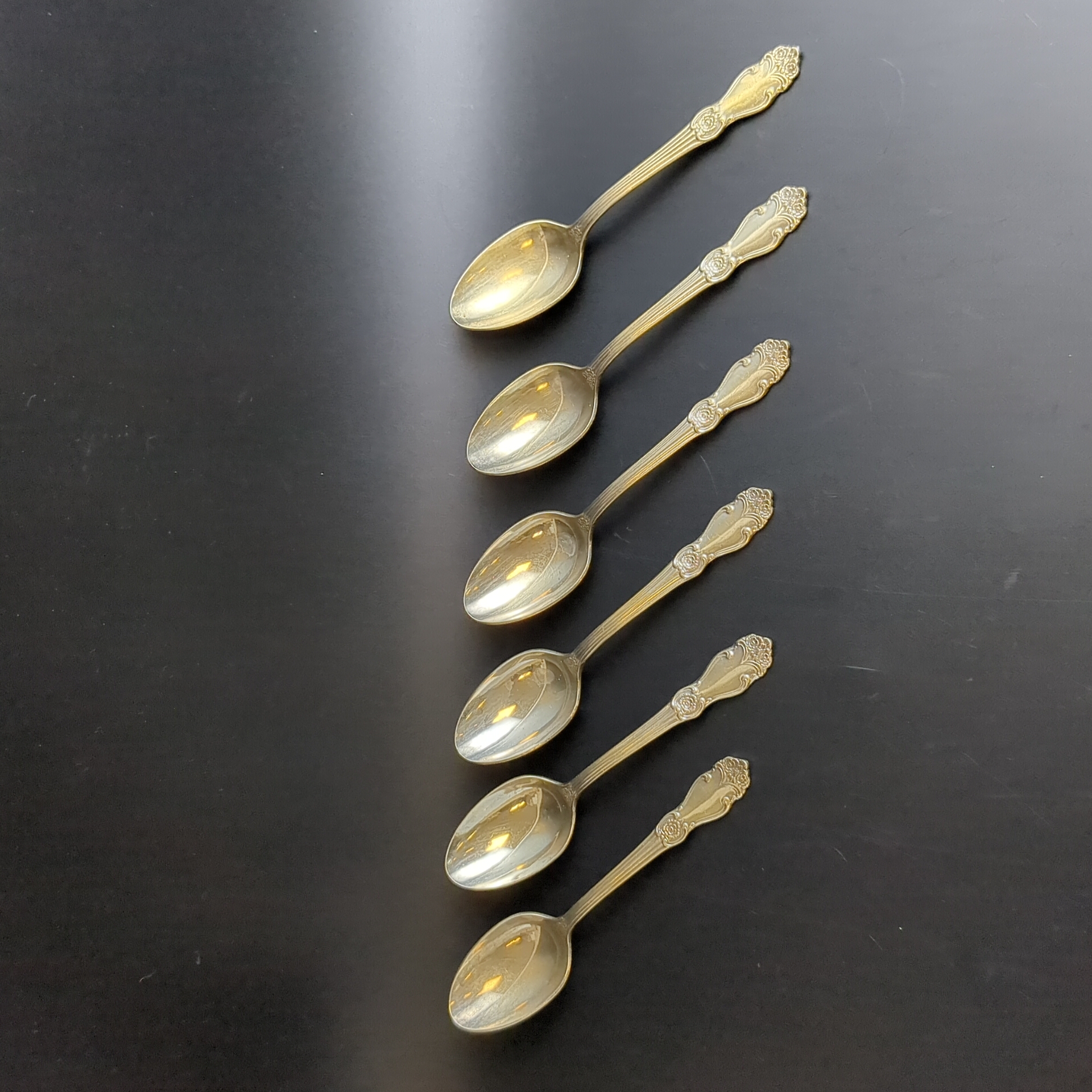 Набор из 6 чайных ложек "Золотая роза", мНЦ (медь-никель-цинк), золочение, Кольчугинский завод цветных металлов, СССР, 1970-1990 гг.