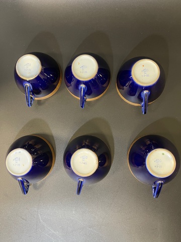 Набор из 6 чайных пар ЛФЗ, кобальт с позолотой,