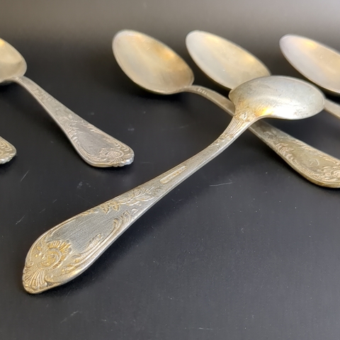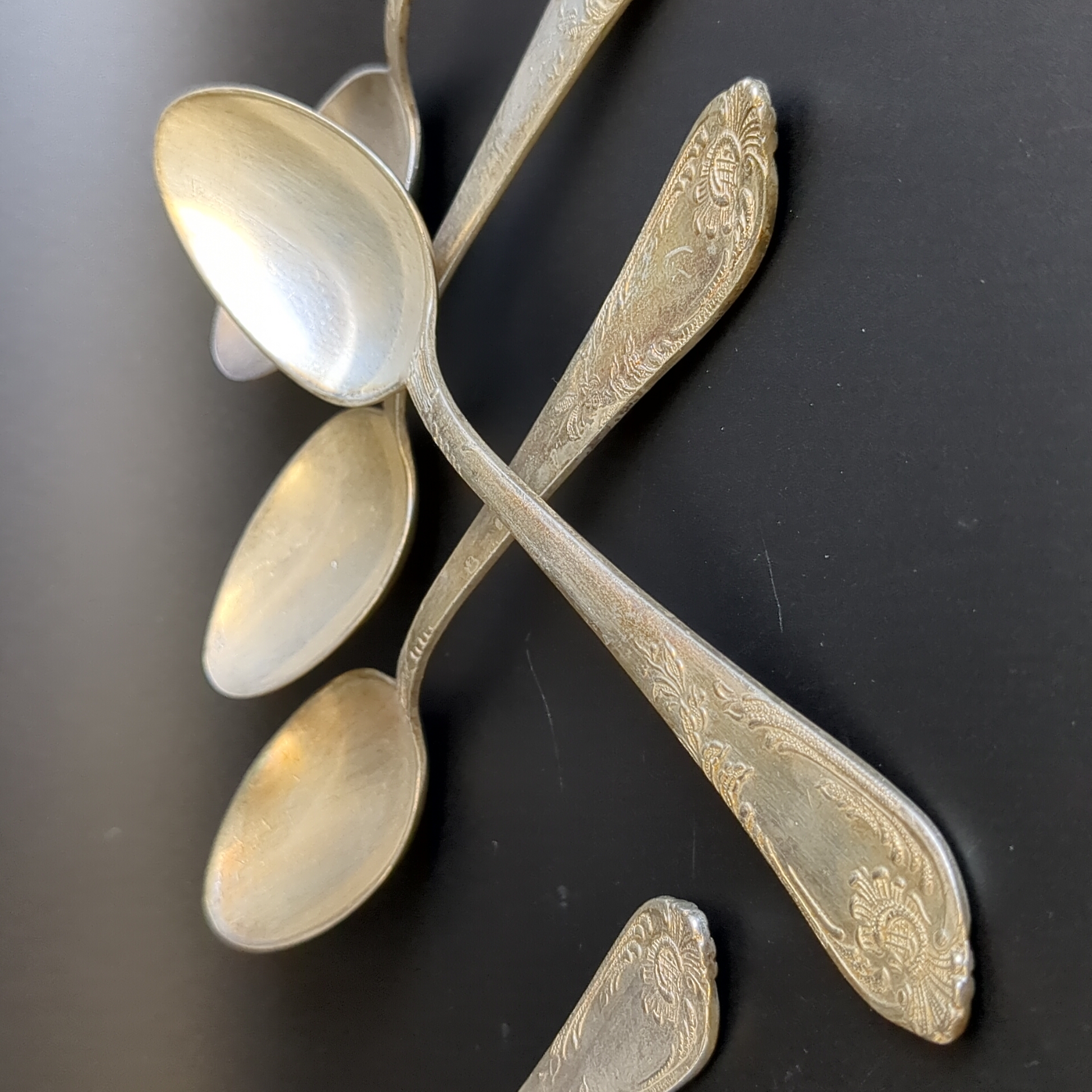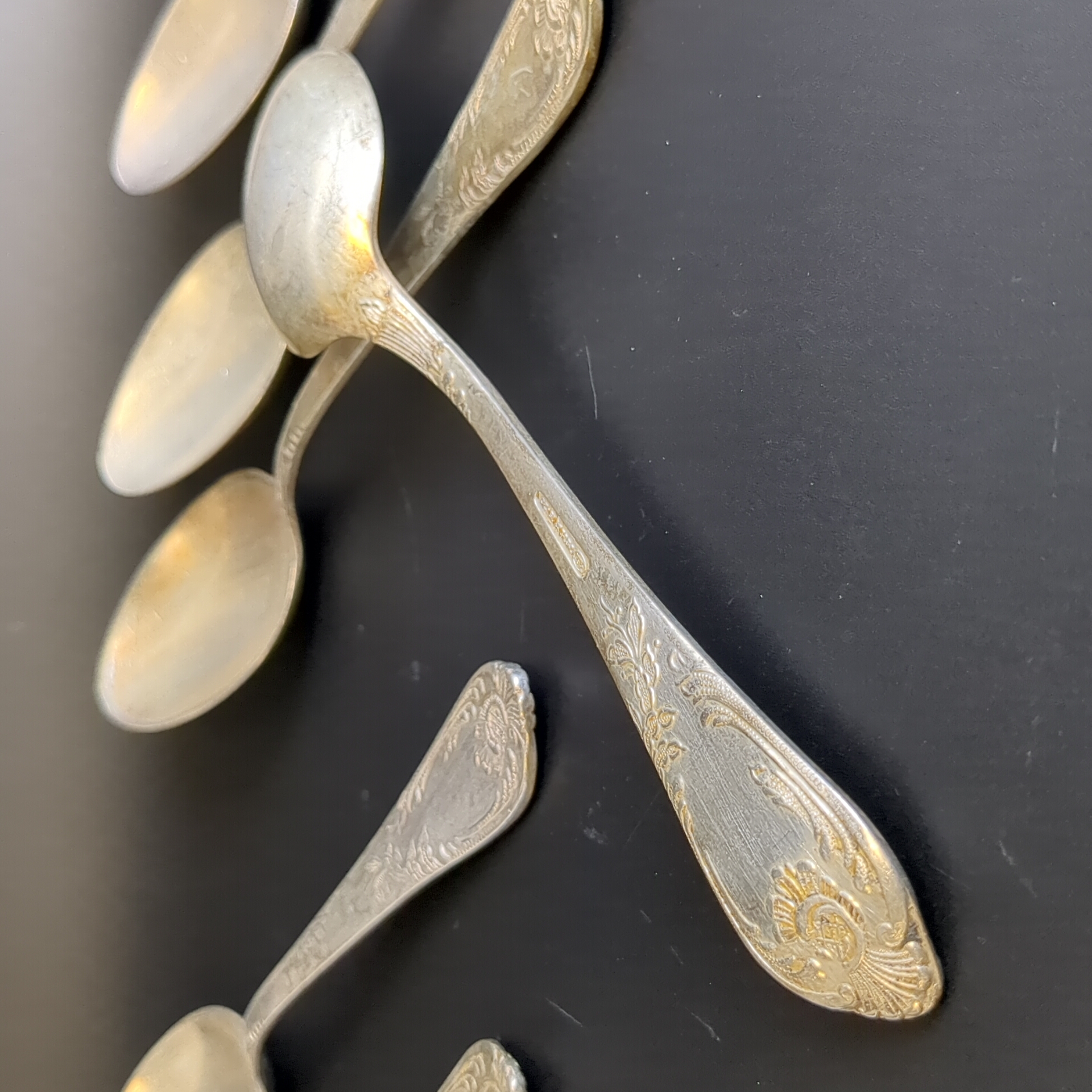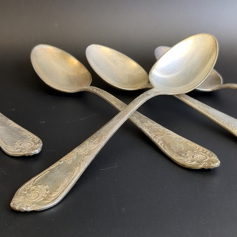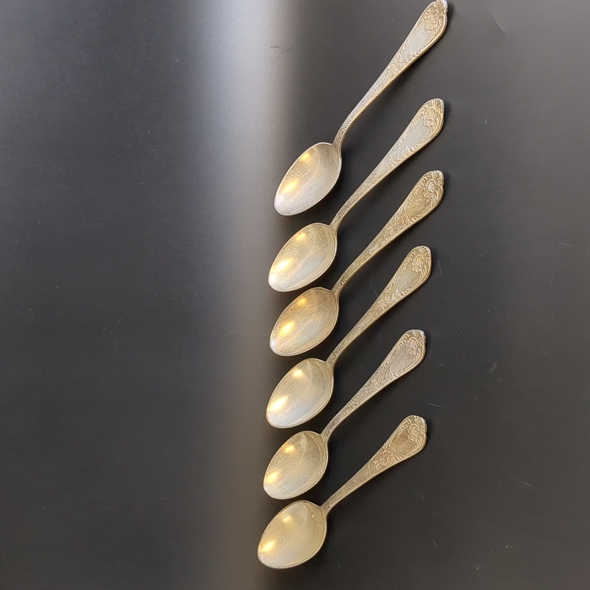 Набор из 6 десертных ложек с цветочным декором - МНЦ - Вольнянский завод столовых приборов им. Шевченко - ЗиШ - СССР
