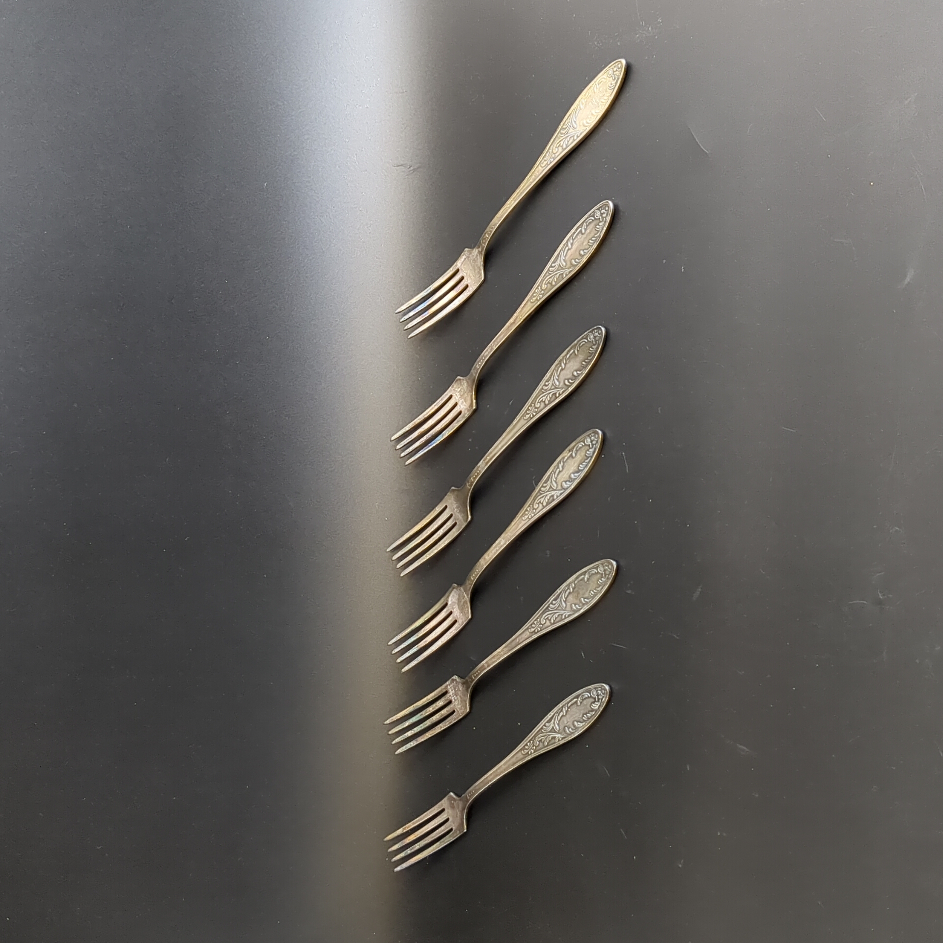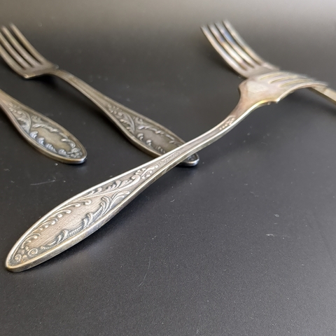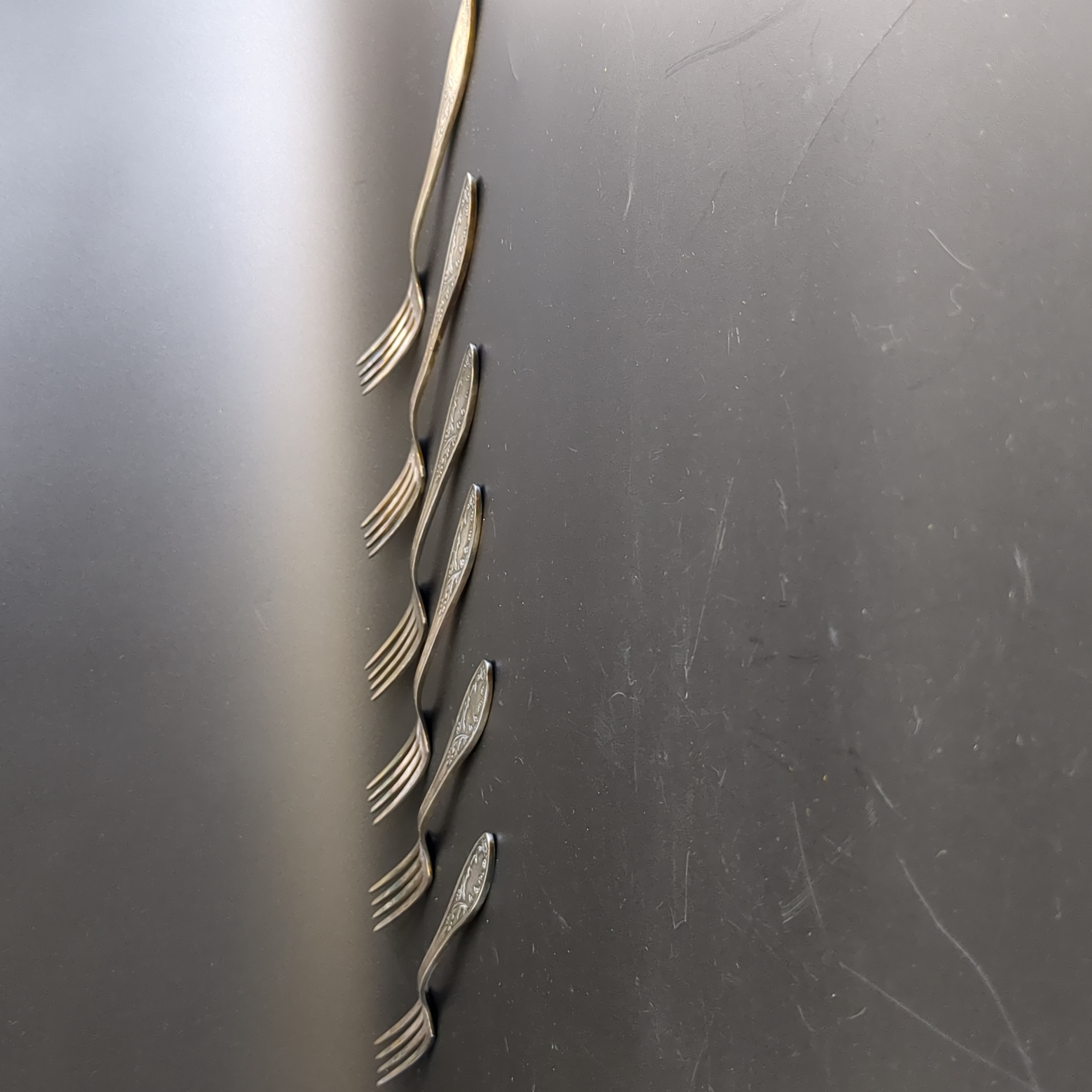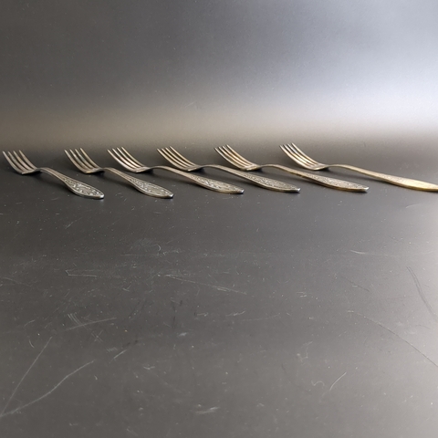 Набор из 6 десертных вилок Пламя - мельхиор - МНЦ - Кольугино - СССР