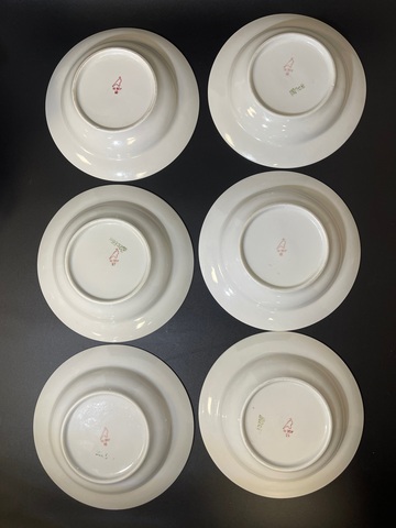 Набор из 6 фарфоровых тарелок глубоких для второго блюда/подтарельник Дулево ФЗ, рисунок цветы, золочение, СССР 1990 год