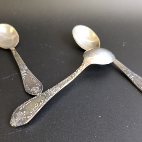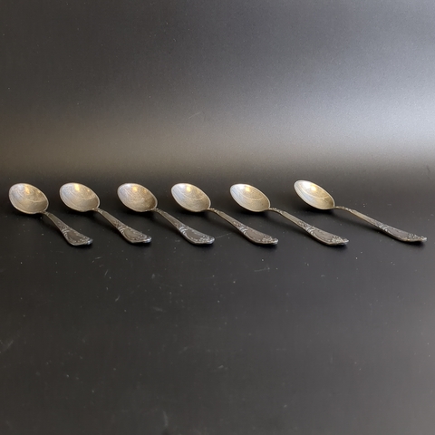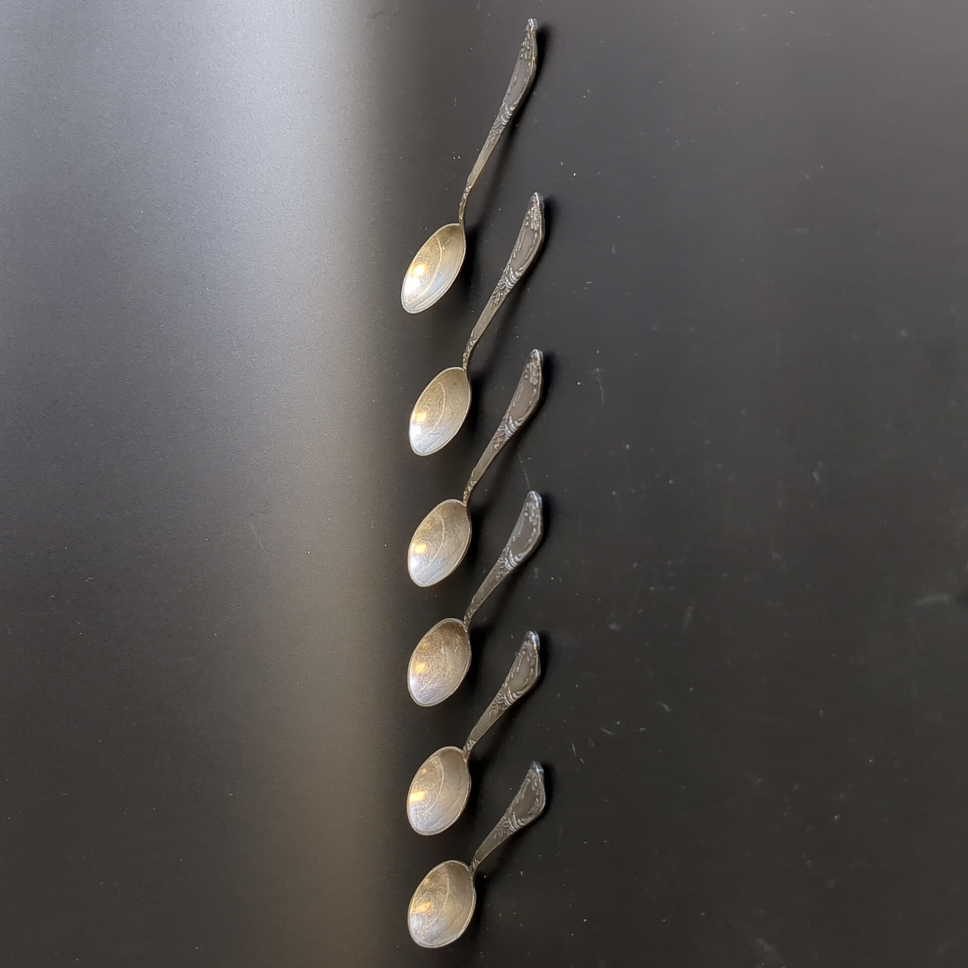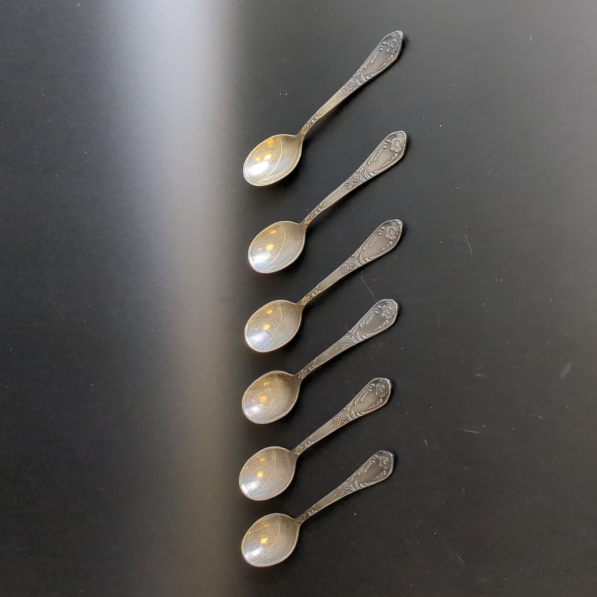 Набор из 6 кофейных ложек с цветочным декором - МНЦ - Вольнянский завод столовых приборов им. Шевченко - ЗиШ - СССР