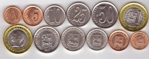 Набор из 6 монет Венесуэлы (1, 5, 10, 25 и 50 сентимо; 1 боливар) 2009-2012 г. AUNC