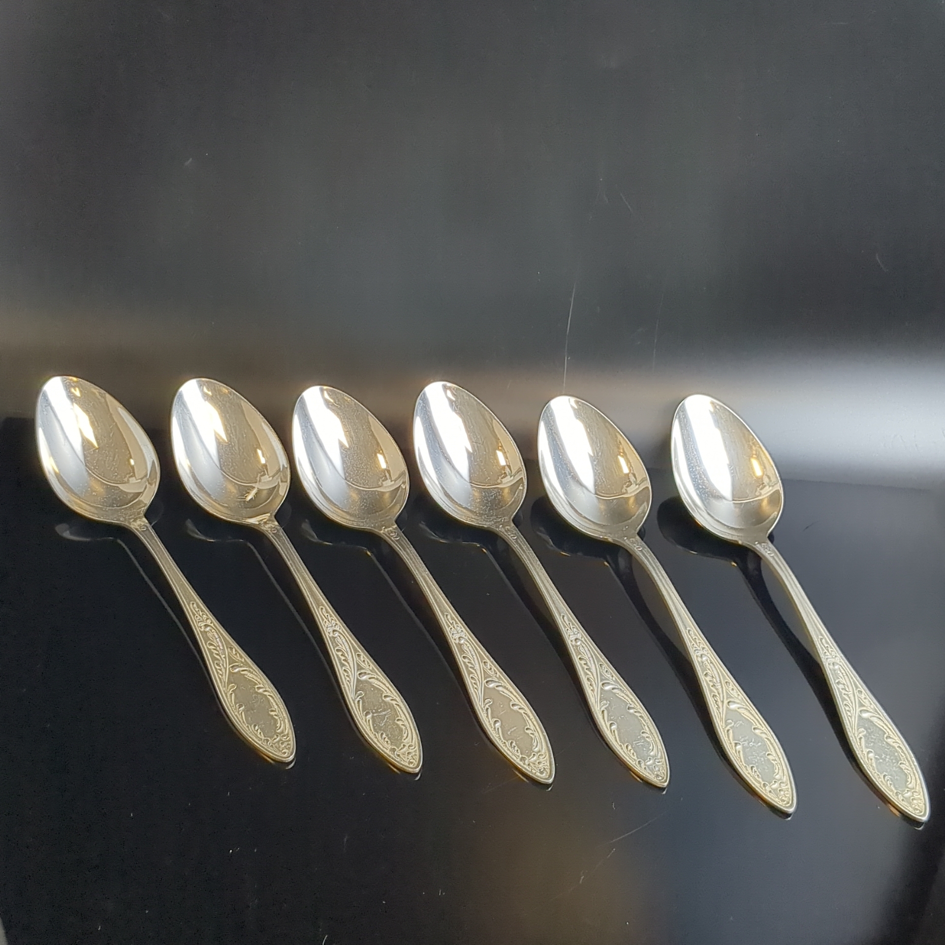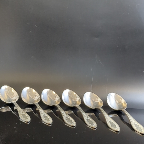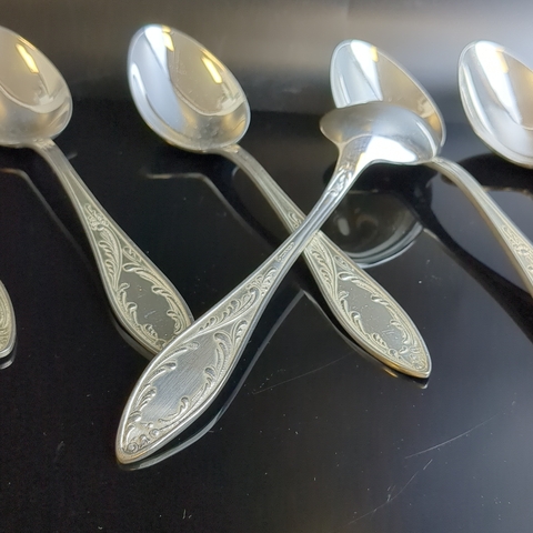 Набор из 6 столовых ложек Пламя - мельхиор - МНЦ - Кольугино - СССР