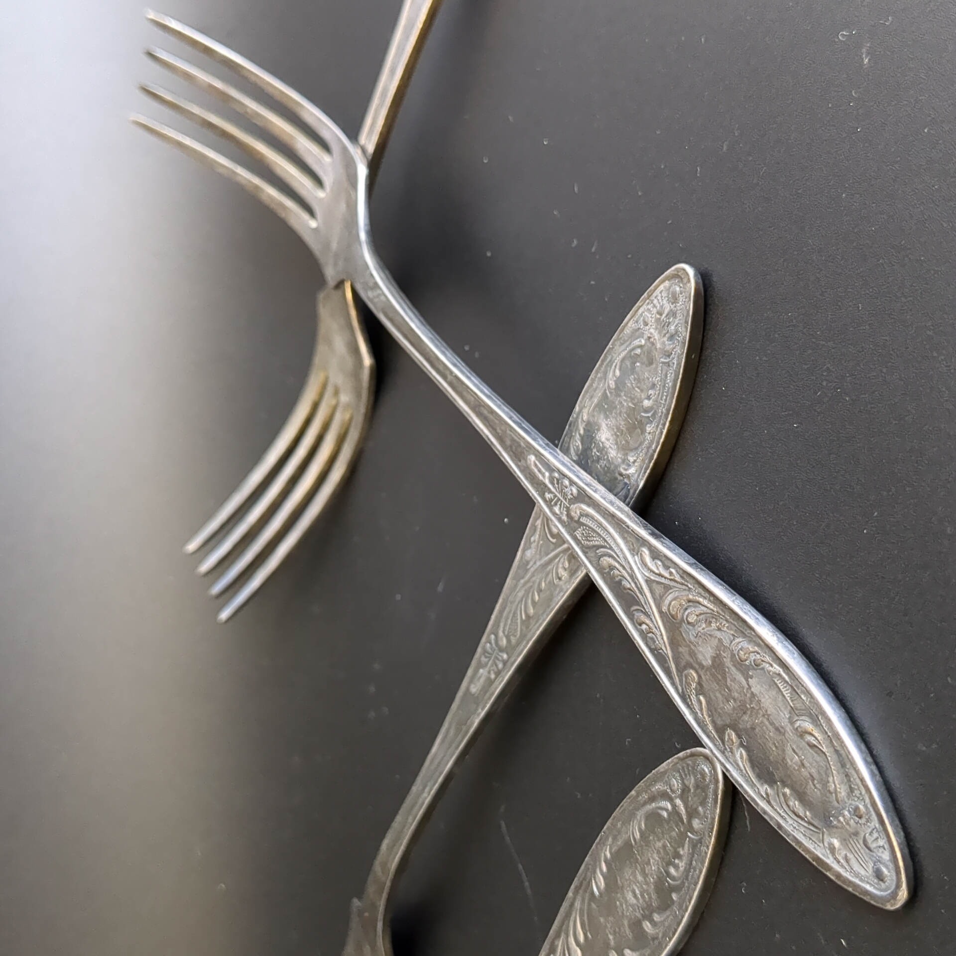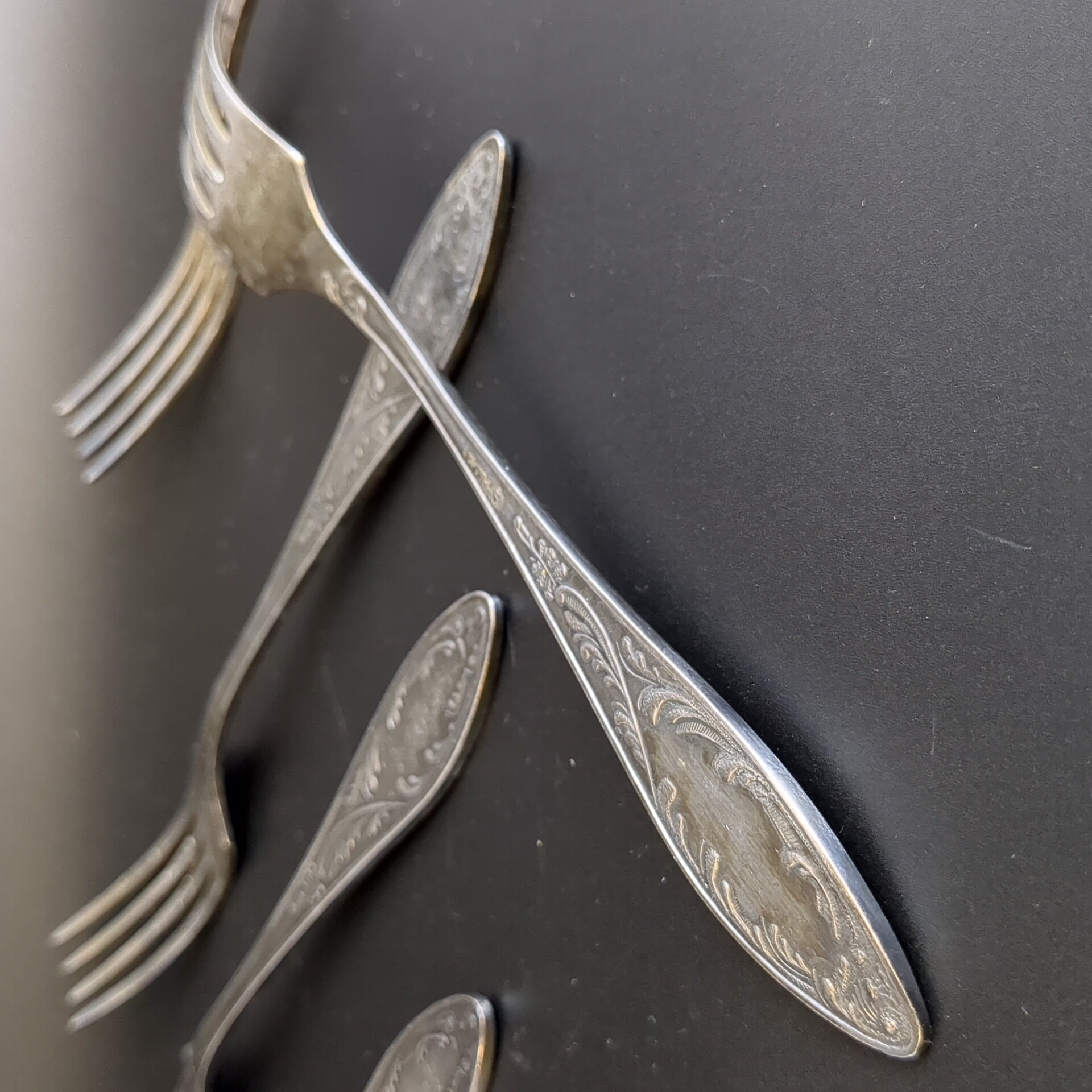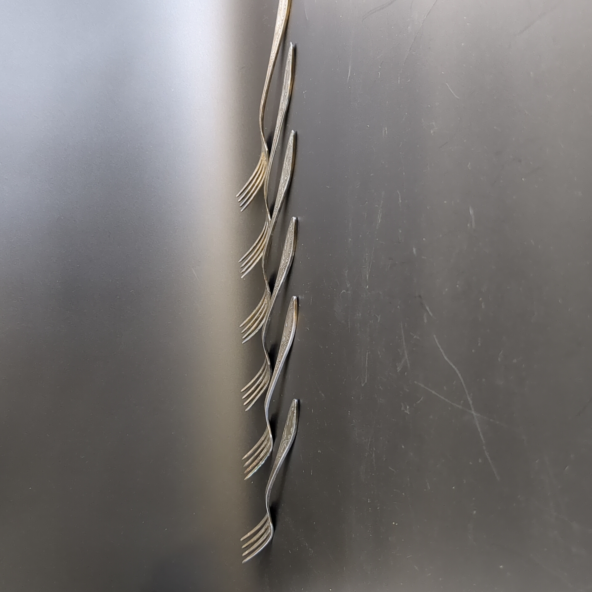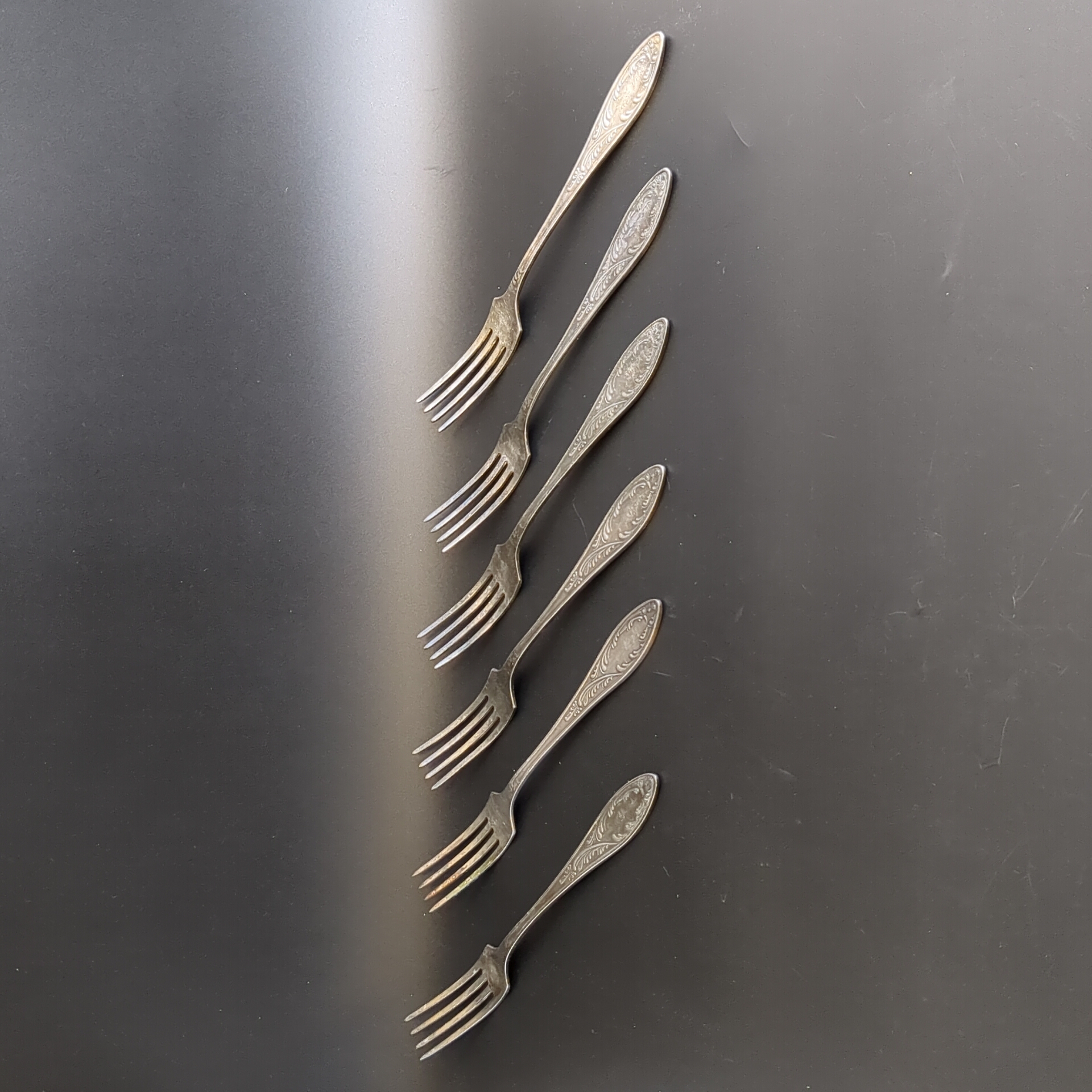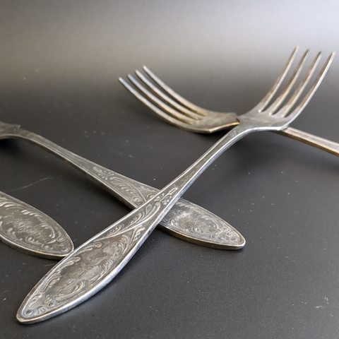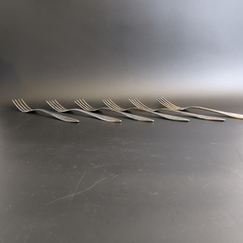 Набор из 6 столовых вилок Пламя - мельхиор - МНЦ - Кольугино - СССР