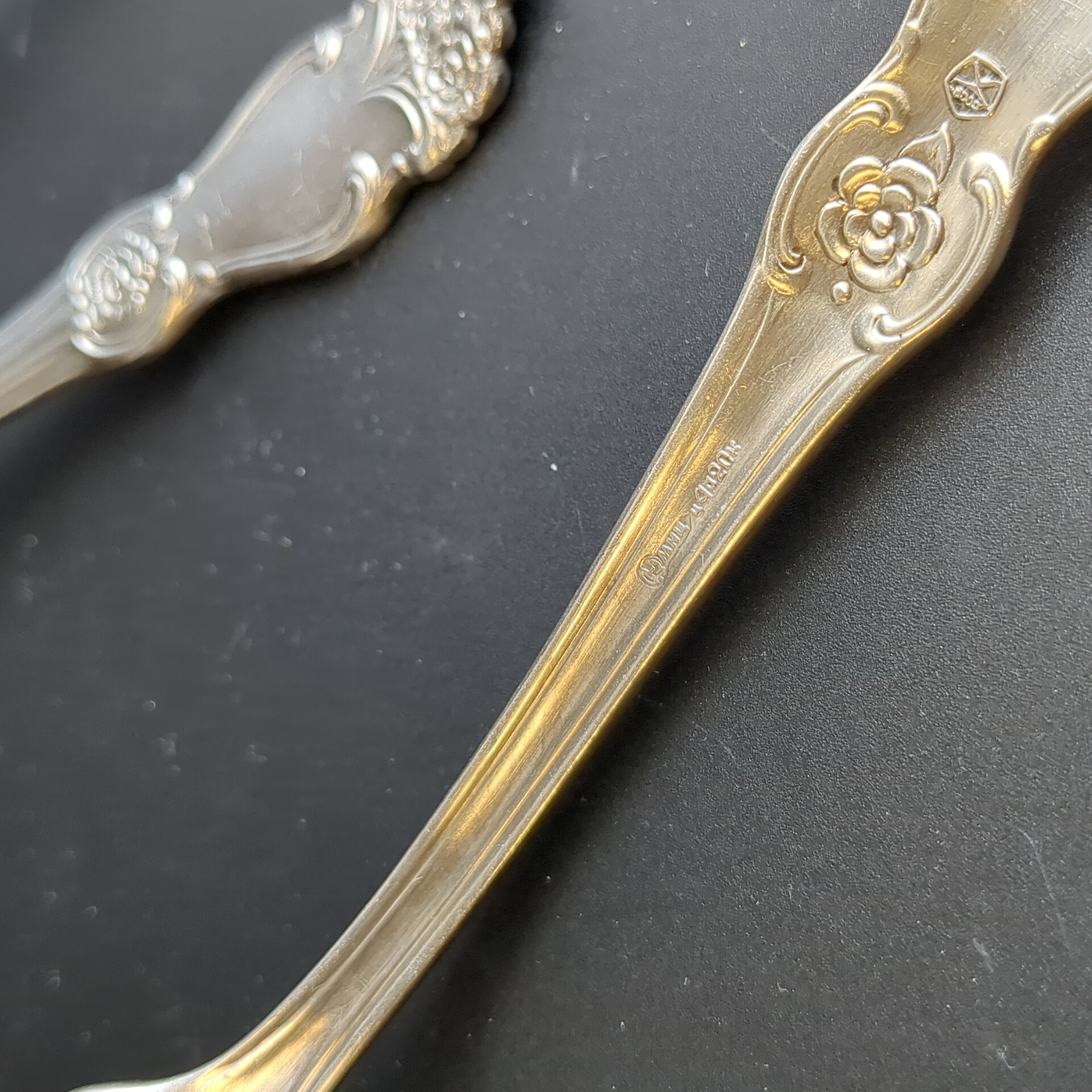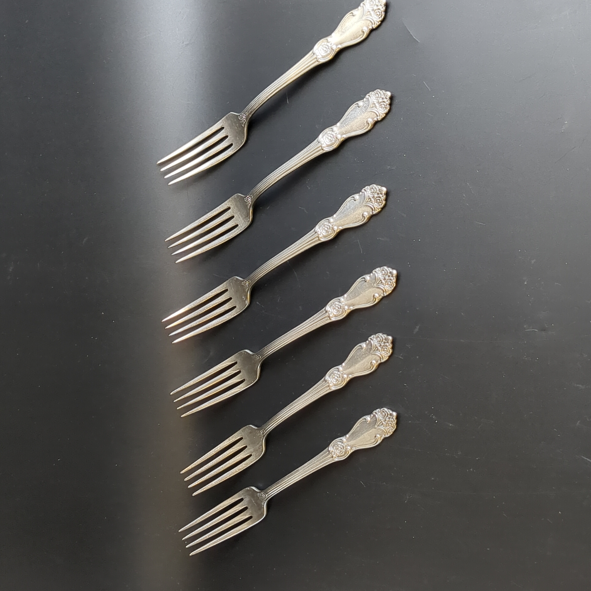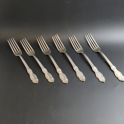 Набор из 6 столовых вилок Роза - мельхиор - МНЦ - Кольугино - СССР