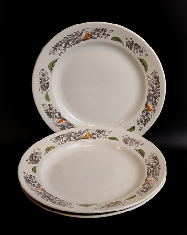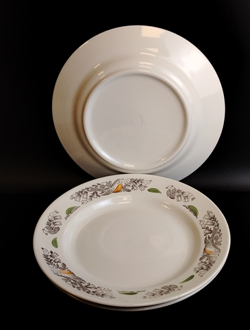 Набор из 6 тарелок (3 суповые и 3 под горячее), фарфор ЗИК, Конаково, "птички", винтаж времен СССР 1974-1991 гг. Высота суповой тарелки - 5 см, диаметр - 24 см. Высота тарелки под второе - 3.3 см, диаметр - 24 см. Состояние на фото, присутствуют следы бытования